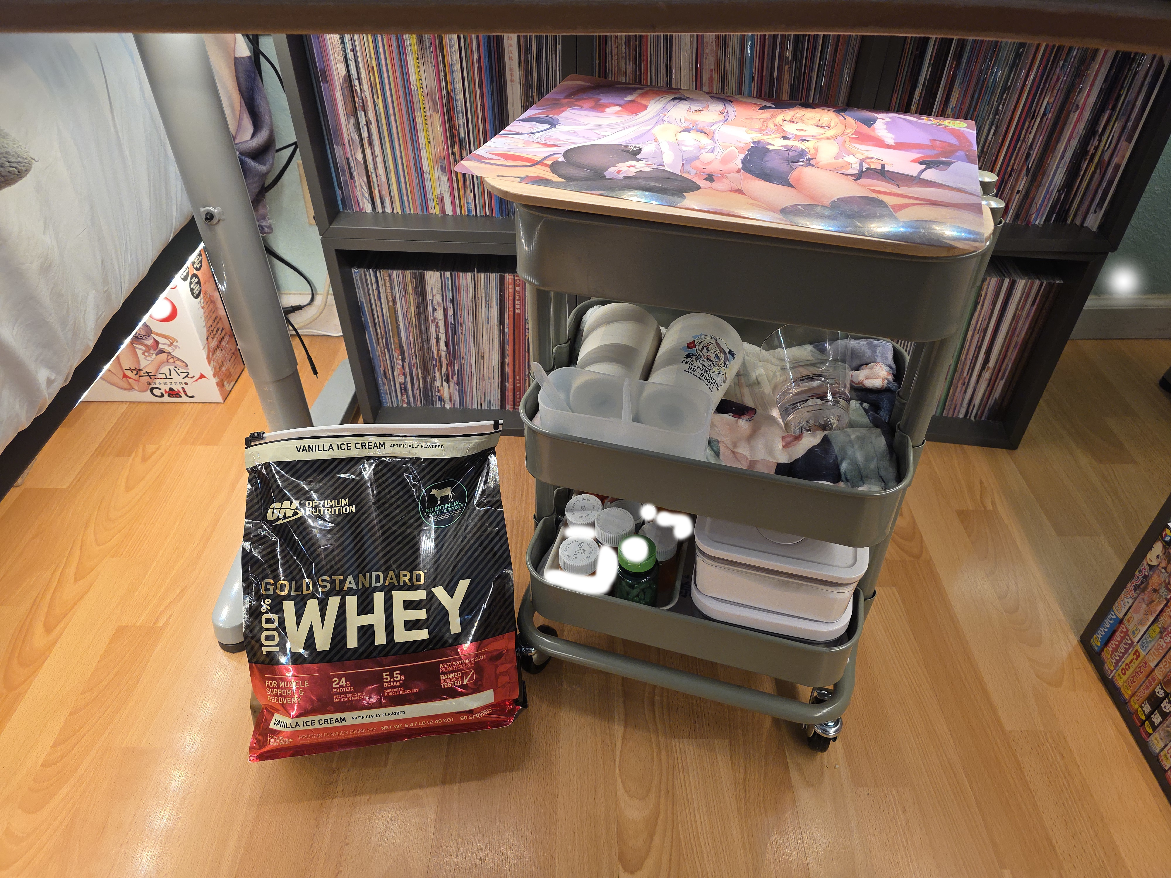 I got a RÅSKOG / NORRÅVA cart from Ikea to help consolidate some things. I used to have my meds and supplements and protein at the front of my room… so keeping everything in one place will hopefully make it easier to wake up and get all my ‘dailies’ done here. Also going to try to commit to taking 4 scoops of protein per day. I had an old bag from 2023 that expired and might have been giving me the runs… so I don’t think I should punish myself by forcing myself to finish the old stuff, even if it might be fine.