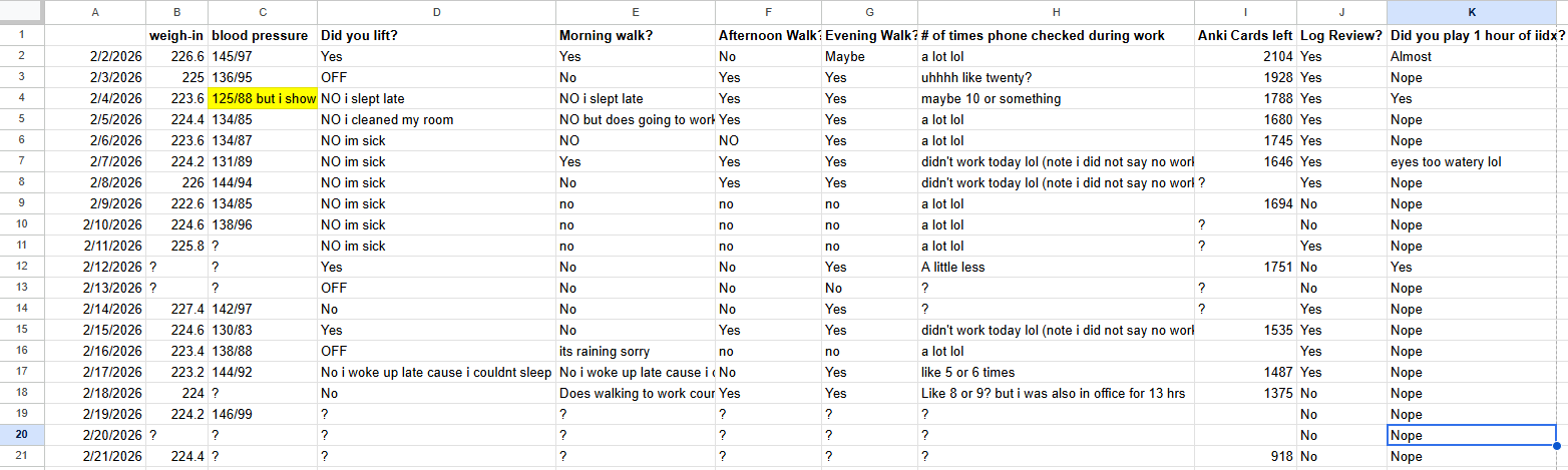 So it’s been about 3 weeks since I started… It’s not looking too good… At the very least… I can say that I’m actually following up on poor performance instead of giving up like every time in my life before…