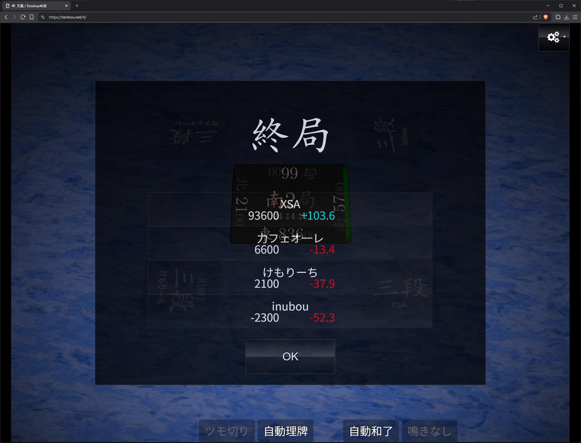 Did have this game earlier today where I absolutely toasted everyone, but about after the point where I crossed ~50k points it didn’t seem fun or interesting at that point. It felt like… it’s too good to be true or I’m just lucky at this point, so it doesn’t seem real. Where’s the struggle? the bitching and moaning when I deal in post riichi? This isn’t what mahjong is supposed to be about… It’s about pain and suffering. Maybe I’m actually a masochist or something.
