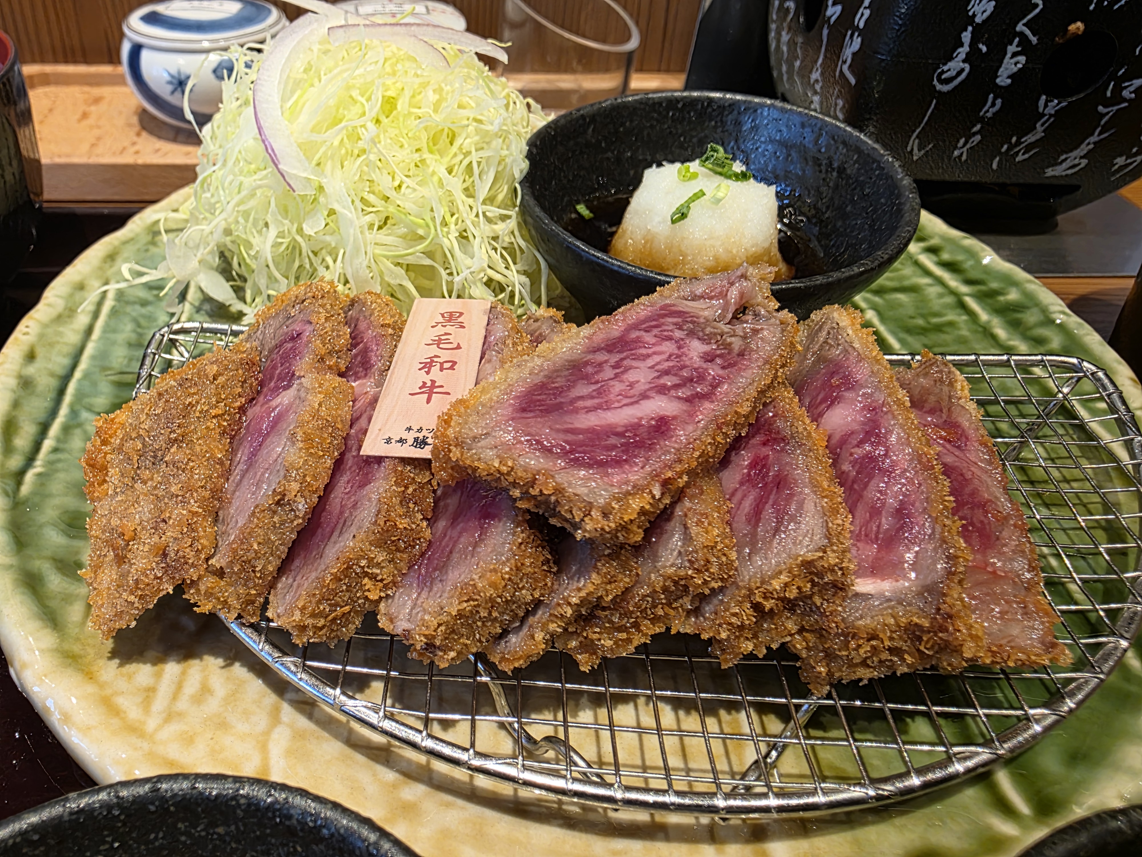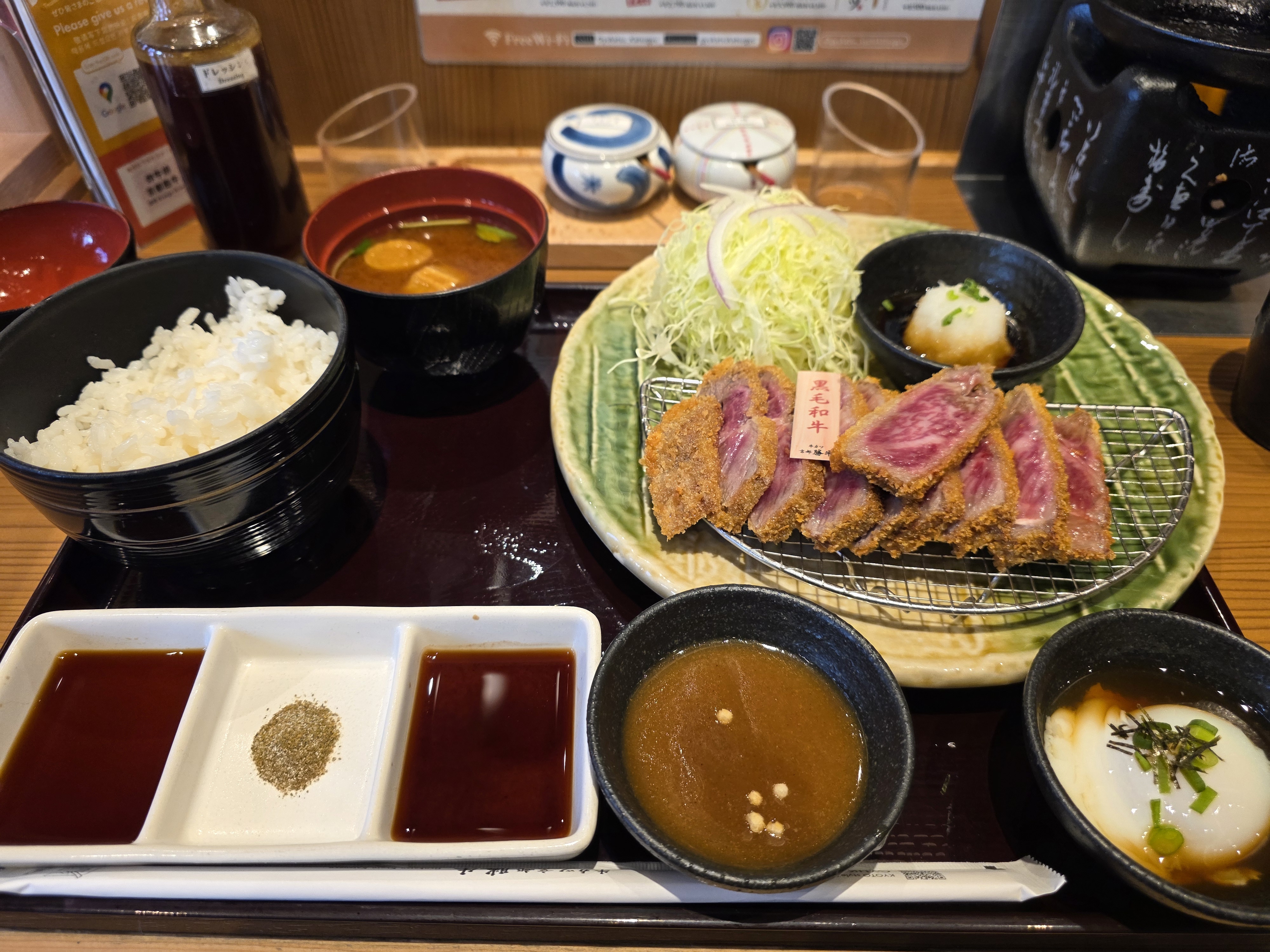 Kyoto Gyukatsu! I first ate here when I went to Toronto visit for an /mjg/ meetup in 2022. Normally when you think of katsu you’d think of pork or chicken… but beef also works well with it! Normally I do like rare meat, but this is a little bit too much, so you can place your sliced meat on the little candle warmer thing with a dish on top to cook your beef more. I’d say it’s a little bit short of the Kobe beef melt in your mouth fattiness, but each bite is still nice as you can choose to dip your beef in soy sauce, gyukatsu sauce, citrus soy sauce, Kyoto curry, or my favorite, the spring egg mix.