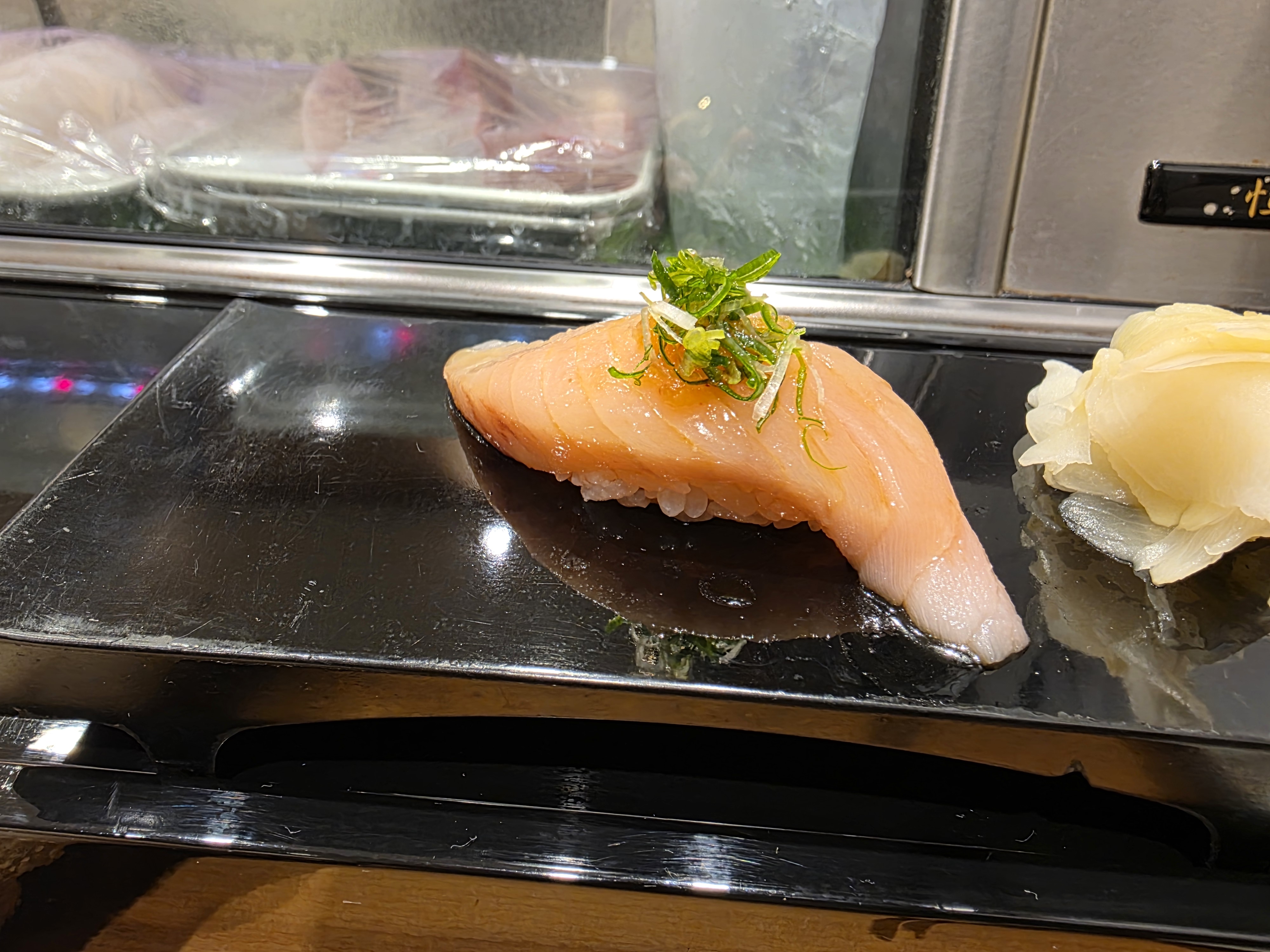 I like the one on the left the most, it has some chicken shit on top with some egg salad and a shiso leaf in between. My brother hates shiso leaf, but I think it adds a nice accent to the food.