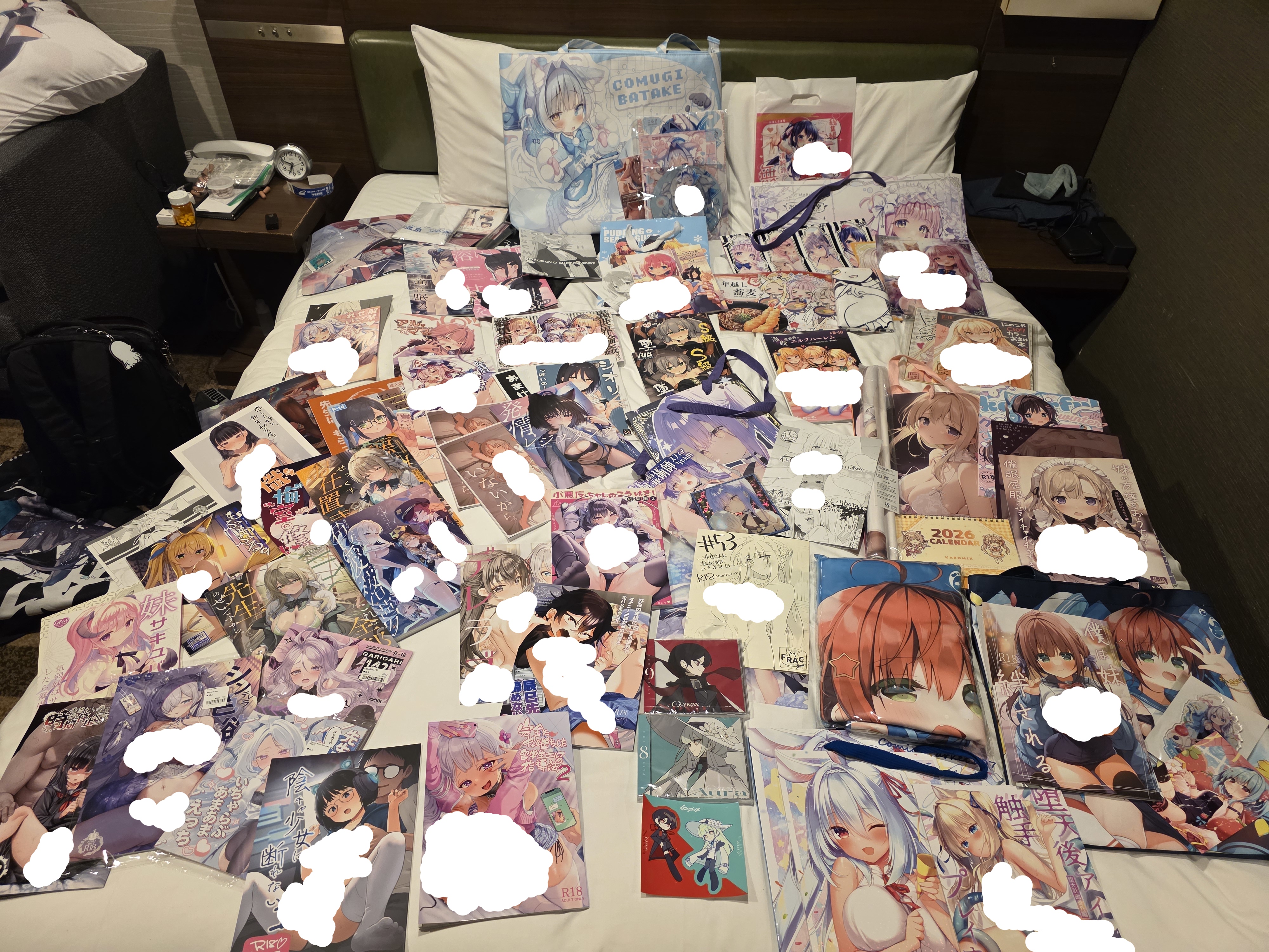 We split our loot back at home and planned our approach. Since the adult section was split into two different halls (456 and 78), we agreed that I would take halls 78 and he would take halls 456. I ended up with wall booths only in 78, and for him a mix of wall booths and fighting his way through ロリ島 for some isolated aisle booths. Our plan for entry this morning would be to watch for when entry to the east hall waiting area starts and dash in – we started to see people entering the line at 5:45 AM, but we didn’t have the courage to jump out of our spot in the ‘early’ standby queue until a few minutes later. This put us immensely ahead of where we were on the prior day, so I was hopeful to get started. Unfortunately I made it to my first booth and saw how long the line for only that one booth was despite making it there at about 11:06 and my emotions were starting to sink as this would jeopardize the rest of the booths I planned to hit. I finished that one at about 11:35, finished another at 11:45, then got stuck in the next one until 12:30…. luckily my friend finished his side of halls 456 quickly, so he was able to jump in and finish the rest of the things I hadn’t been able to get to yet. I did miss a few items from the first and third booths, but all in all I think it worked out since he was able to get everything else. Having a partner for comiket is quite useful…! thanks bwo