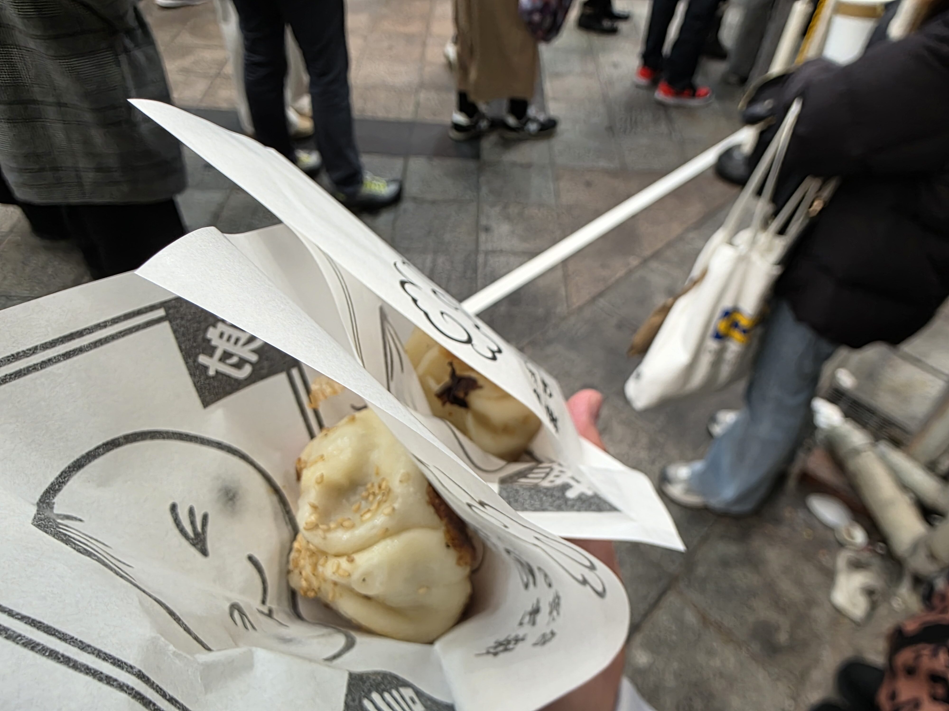 So we deecided to eat street food! I got to eat an imo filled taiyaki, a cheese menchi katsu, some soup filled dumpling, and some yakionigiri (not pictured cause I ate em lol).