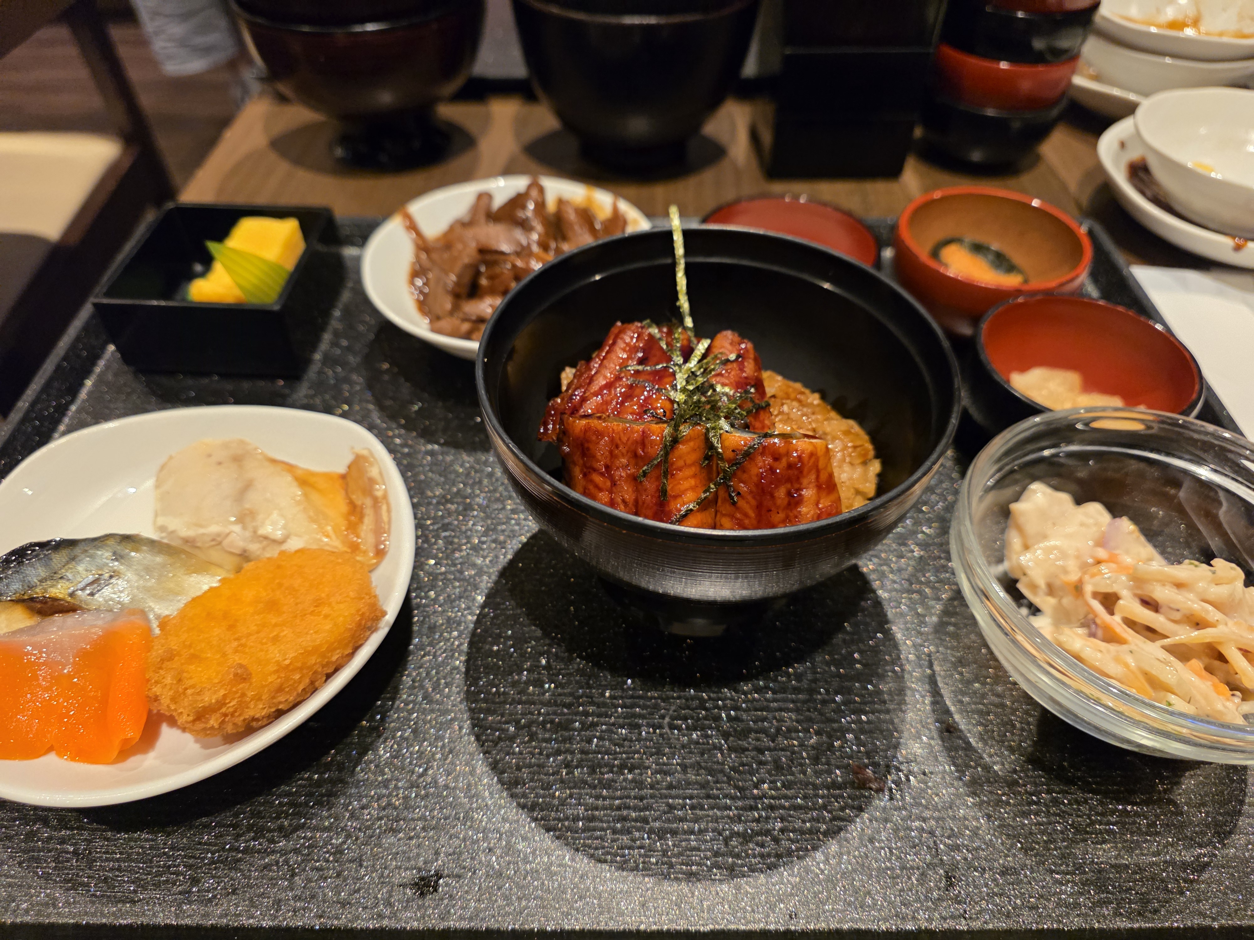 We deciced to head to Nagashima Spa land for January 2nd and opened with breakfast at the hotel buffet. Since we’re in Nagoya, the specialty items here are eel hitsumabushi and kishimen (wide noodles):
