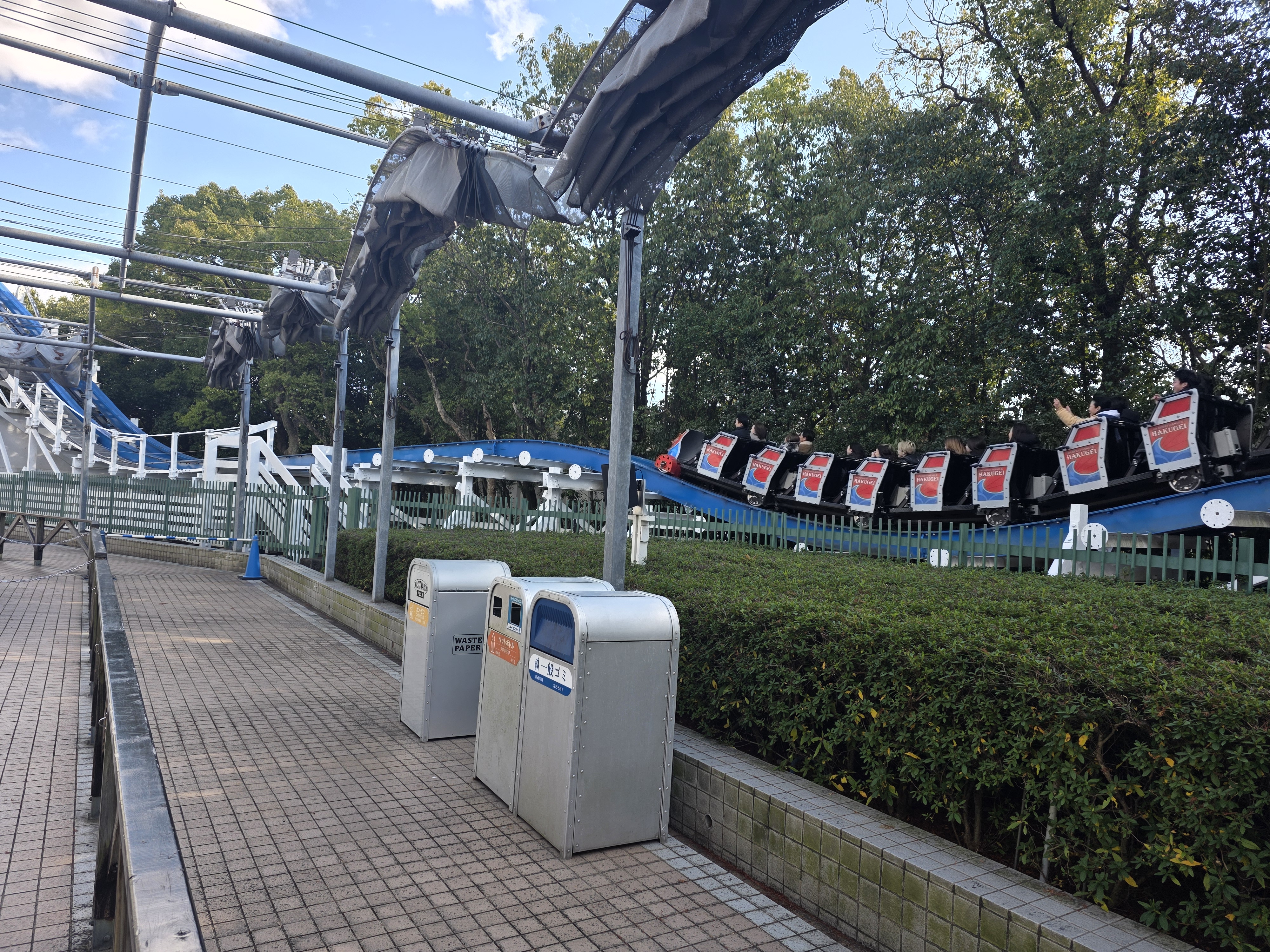 We got a ride on Steel Dragon 2000, 4 on Hakugei, Arashi, and Acrobat. We were enjoying Hakugei in the early morning as we could get a ride in about 10 minutes, though we took a break and waited a long time for Arashi and rode Acrobat and by the time we wanted to ride more Hakugei, Steel Dragon was closed due to winds, making everyone else stack up at Hakugei. All good things must come to an end, so we paid for one express ticket for a last ride and went over to Nagashima Onsen.