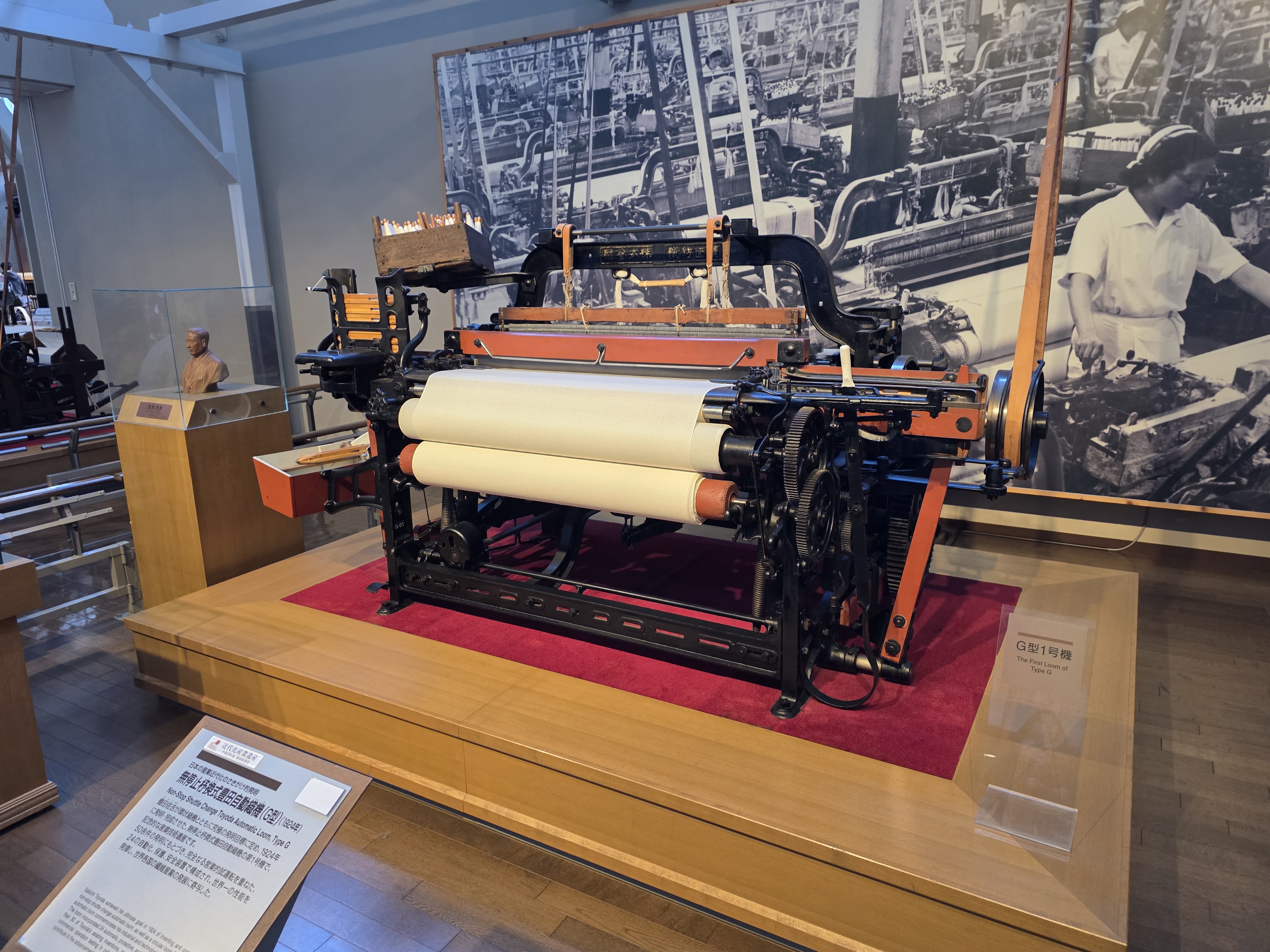 For our last day in Nagoya, we chose to visit the Toyota Commemorative Museum! Note that this is not the car museum located elsewhere in Nagoya… This foucses more on the production of textiles and automobiles, rather than showcasing specific vehicles, as Toyota initially started out as a textile company, then branched off into automobiles in the 1930s. When you start to see all of the machinery and technology in play when processing cotton back then… It makes sense that the mechanical engineering knowledge can be applied quite well towards making cars. Unfortunately I’m not an engineer so a lot of the details are lost on me on how the machines work… but at least they look cool!