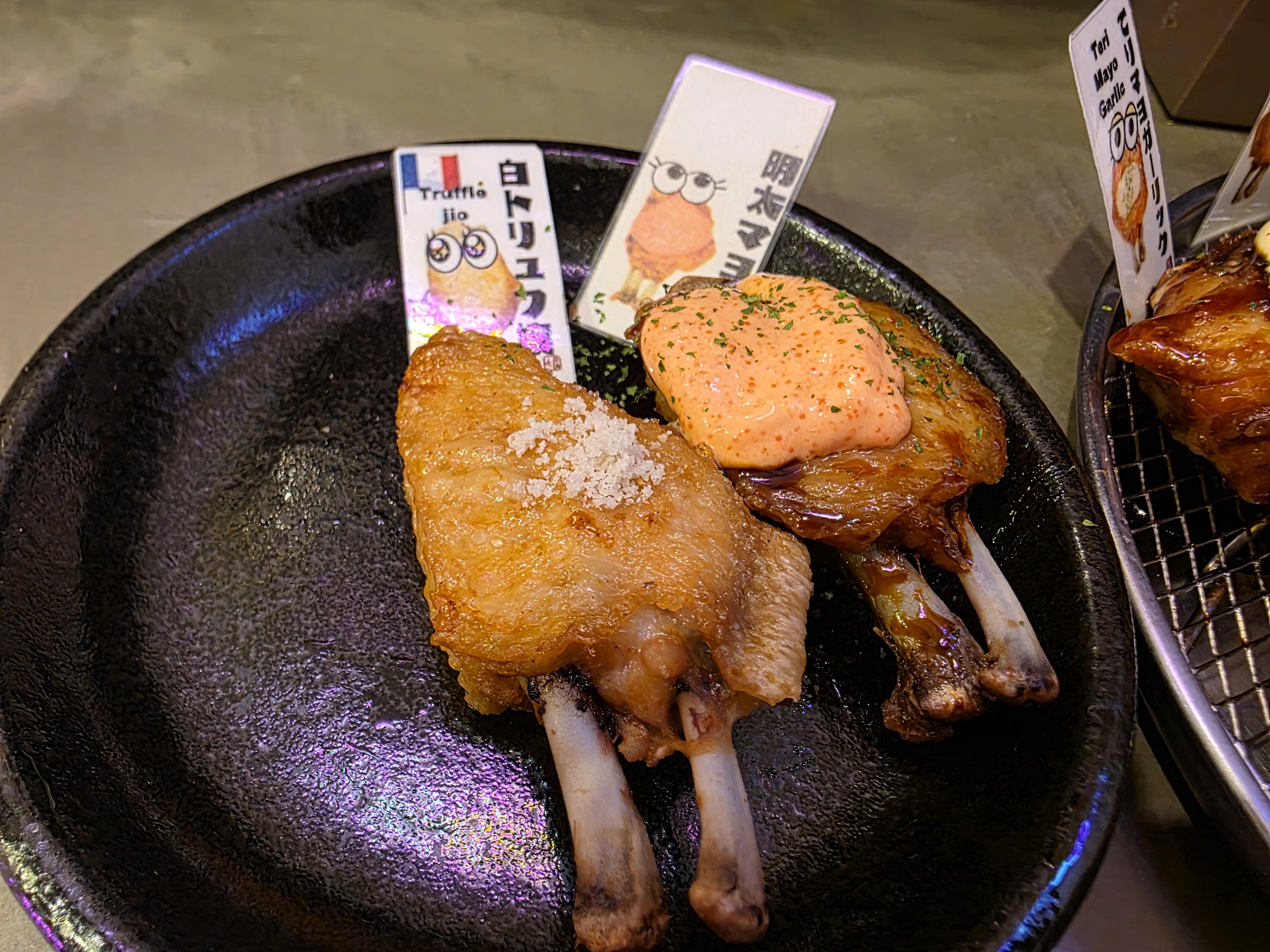In any case… the presentation for this is nice with the plastic tags for each wing indicating the flavor. I like mayonnaise so I would say I like the mentaiko and mayo garlic ones the most. I probably shouldn’t have eaten the yamitsuki and super yamitsuki ones… I’m not particularly big on spicy food relying on chili pepper, so it ruined my palatte for a bit. It’s definitely expensive for what you get, but it’s a fun experience for every bite to be a different flavor!