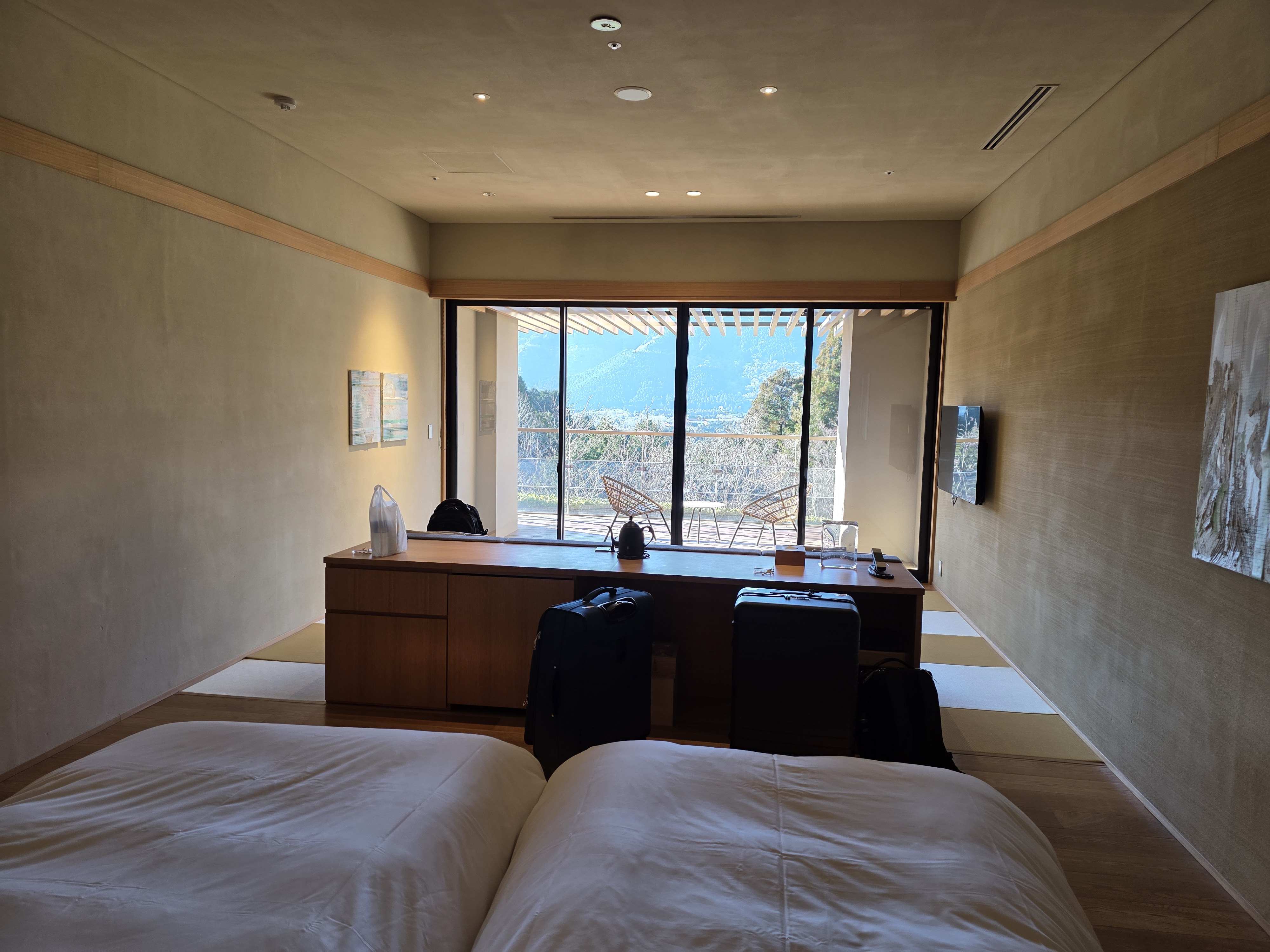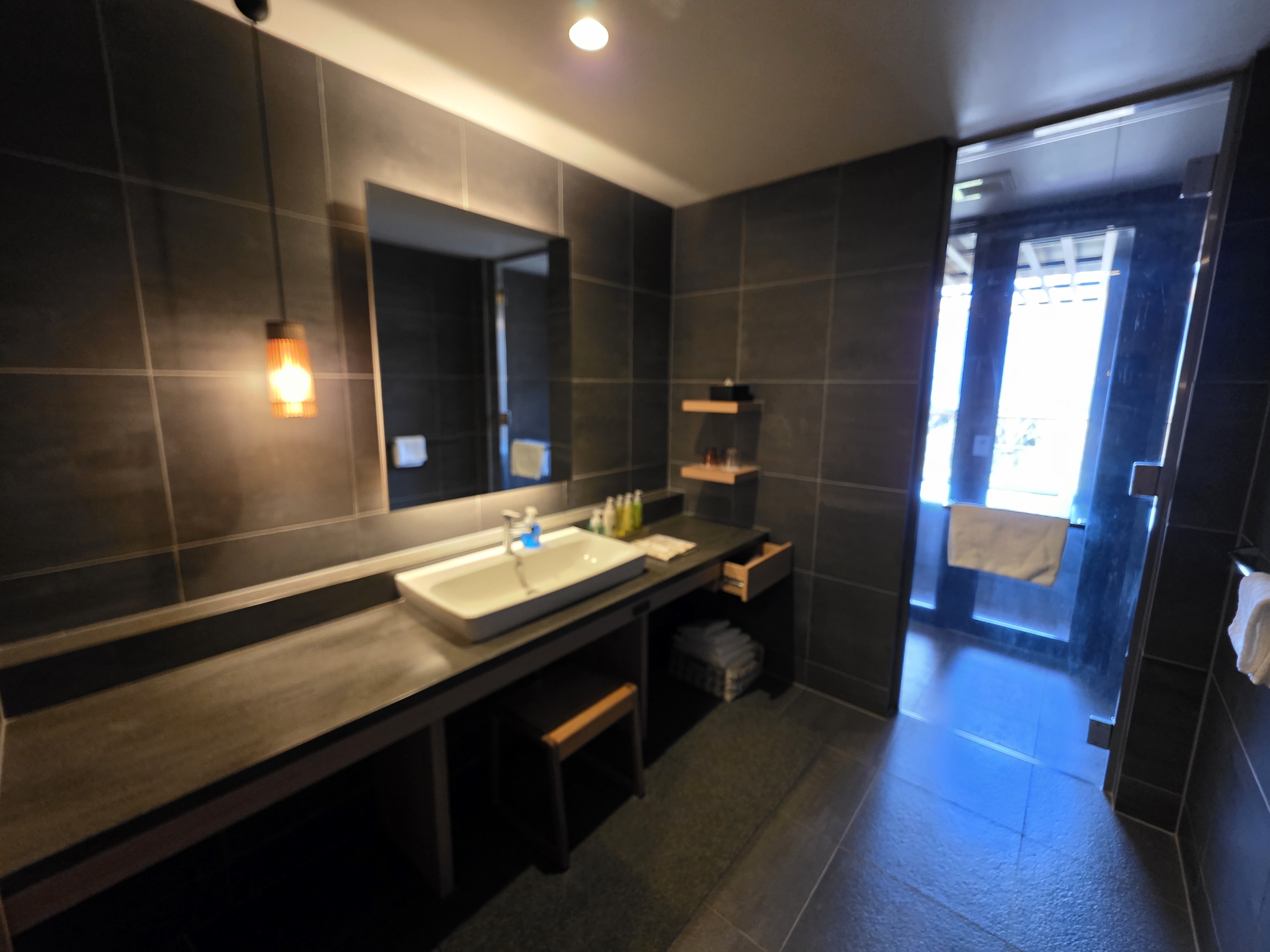 The room is really nice! I mainly wanted this place for the private onsen here. It’s just a little square with hot water, technically, but when the water is being refilled you can really smell the sulfur of the water! It’s nice to be able to use an onsen without anyone else around, though we did use the main bath without anyone around either. I know when I checked earlier there was only one room left at the hotel, but maybe it’s more empty than I thought…?