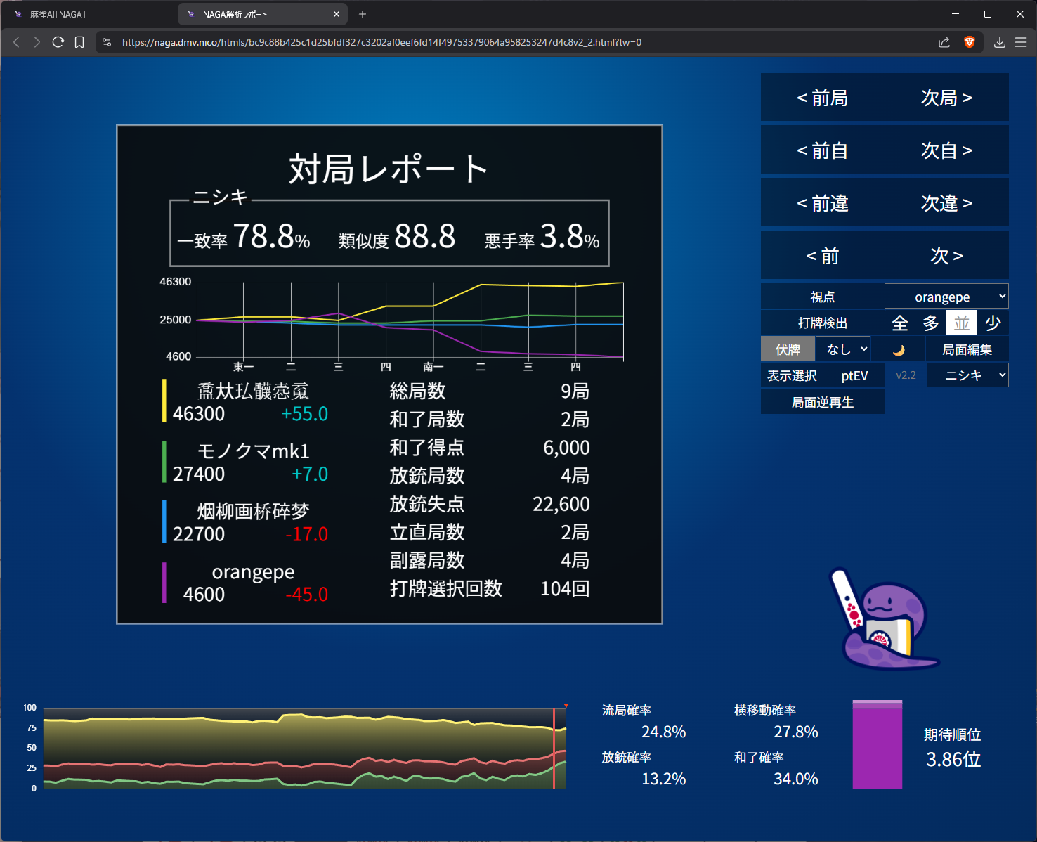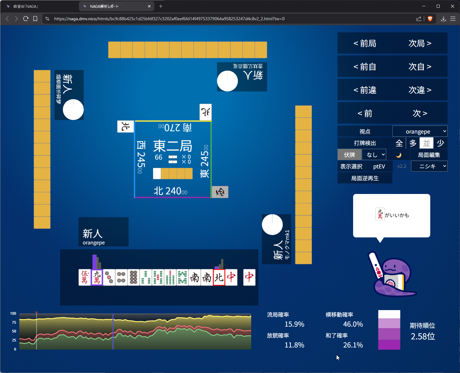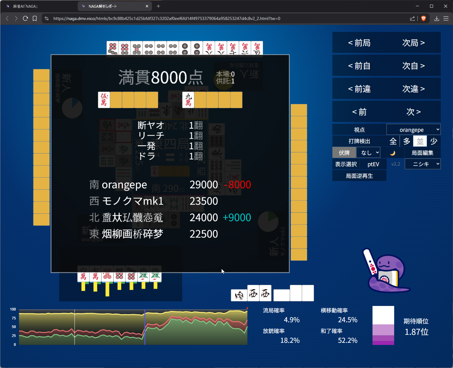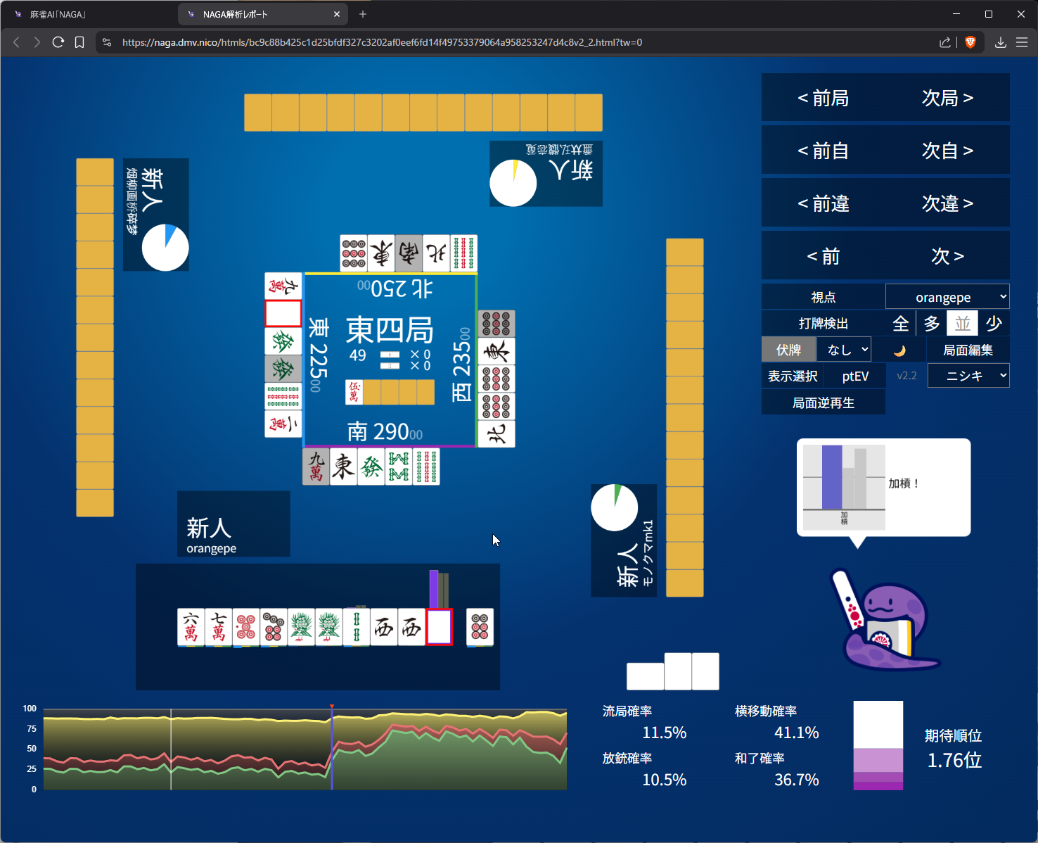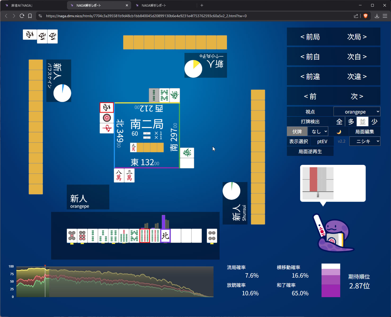 you need value here as 4th in s2 and open tanyao for 1k doesn’t get us anywhere… even the aggressive open snake is 50/50 on it (the right most bar)