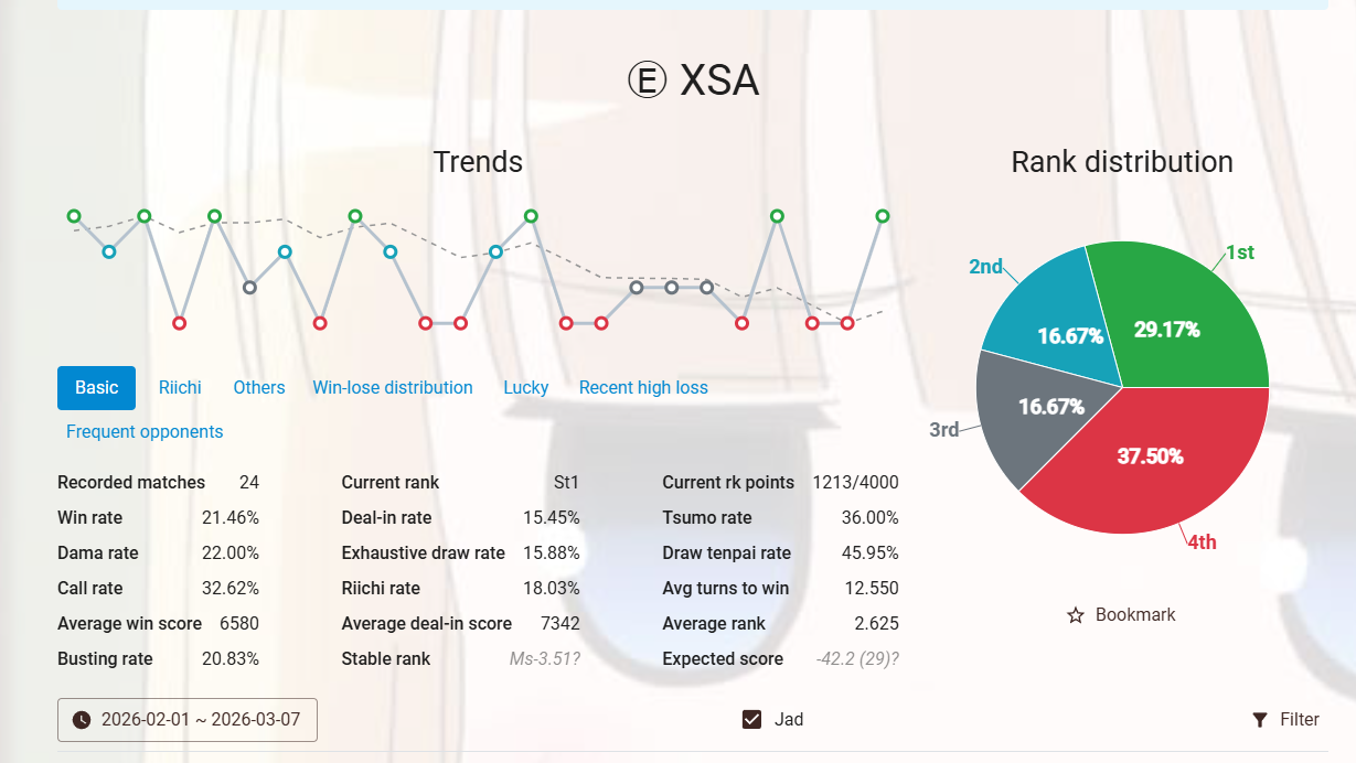 Mahjong has been really sad lately… I thought about taking a short break cause it was making me upset, but I think token one game a day should be fine. Just don’t play a game trying to get a 1st to set the tone for the day… Be happy on your own (: