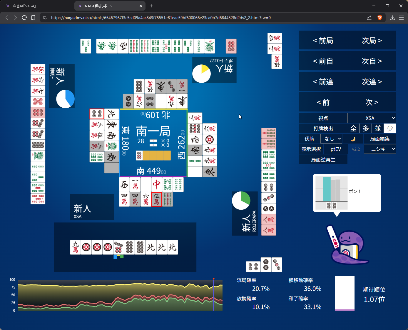 i guess 7p is bad? but i’d rather cut it now rather than later? i guess naga wants me to fold NOW but i dont feel that anyone is tenpai just yet