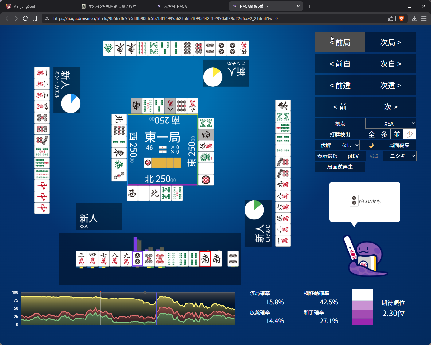 the argument here is most likely because we stand to benefit if toimen can pon pei to end kamicha’s dealership. I’m not sure he’d do that though given the point score…. btu I can see it but I’m also not thinking about that yet.