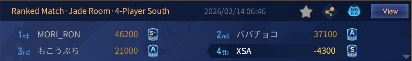 Mahjong Soul Game Log: https://mahjongsoul.game.yo-star.com/?paipu=260214-490a6eaf-2201-4d69-a149-e09f1dc4c83d_a925584019