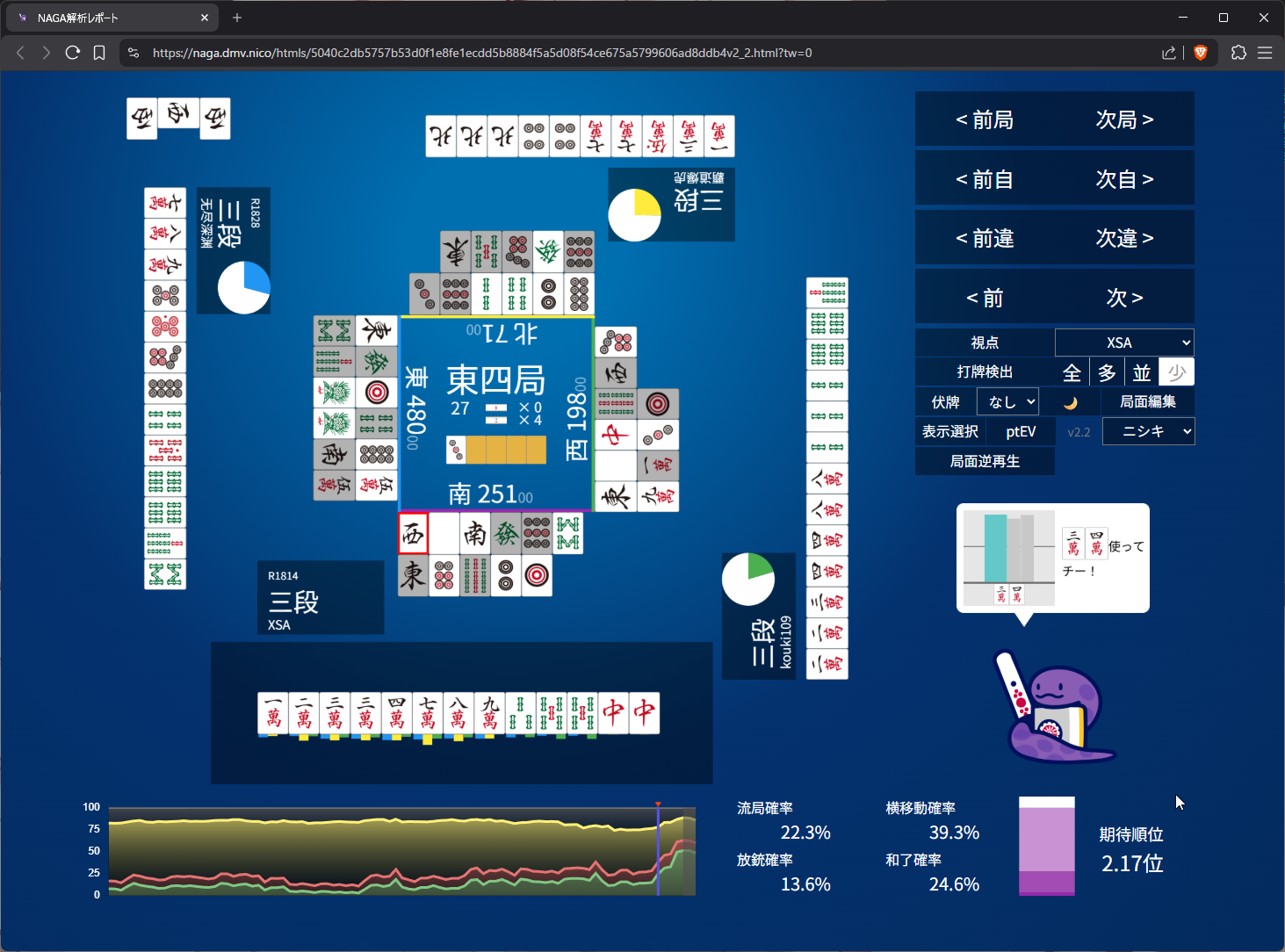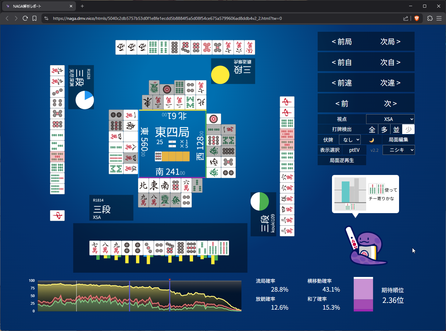 I just want keiten because of point gap for 2nd. looks like we are reaching ryuukyoku with these discards