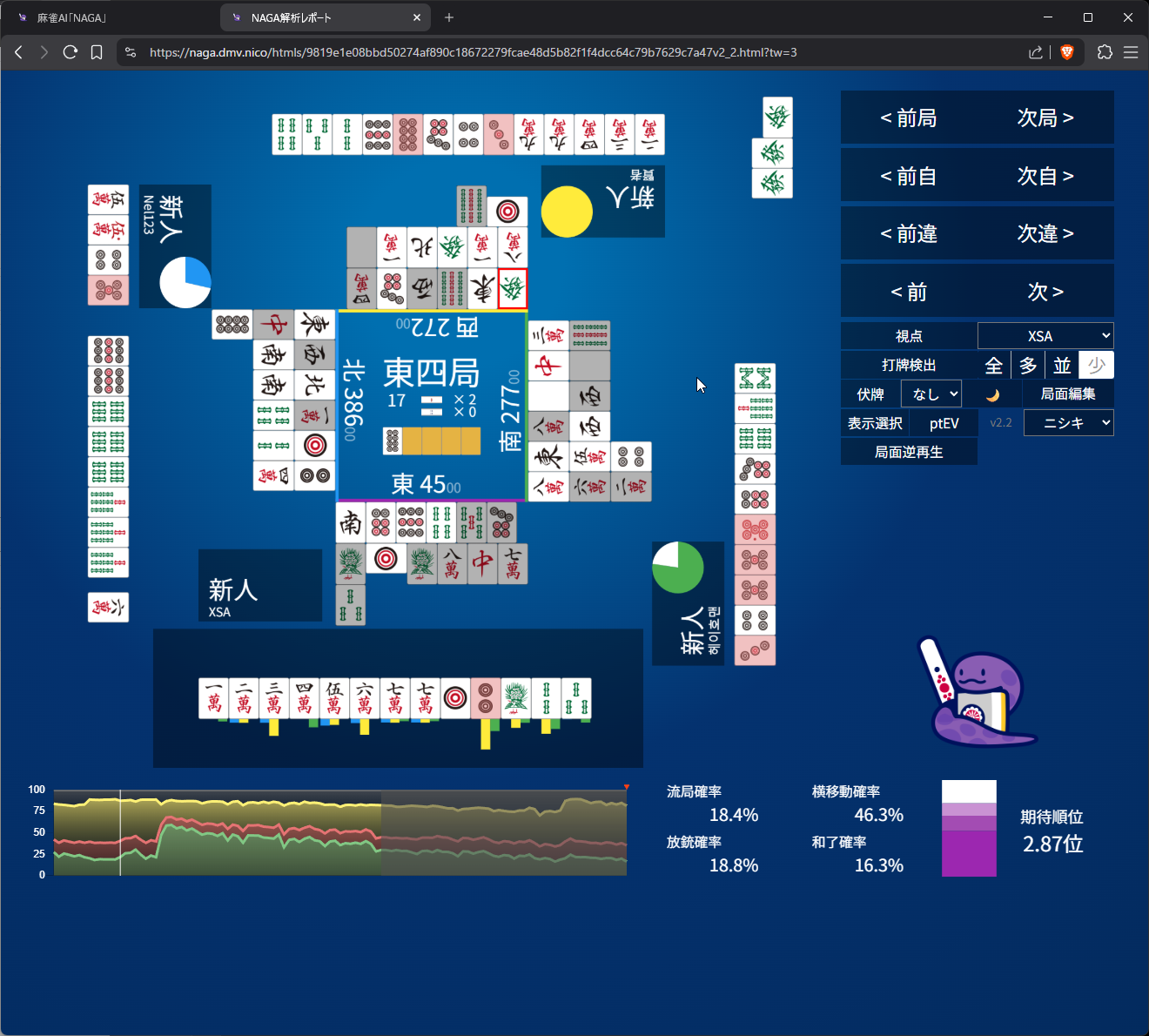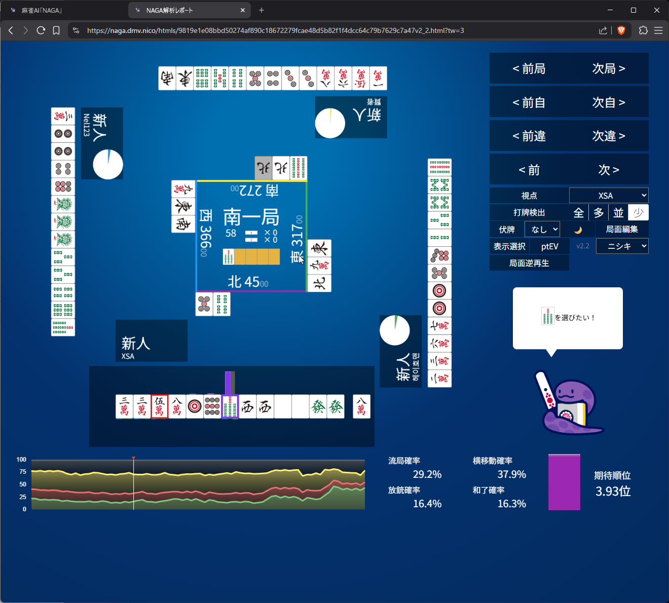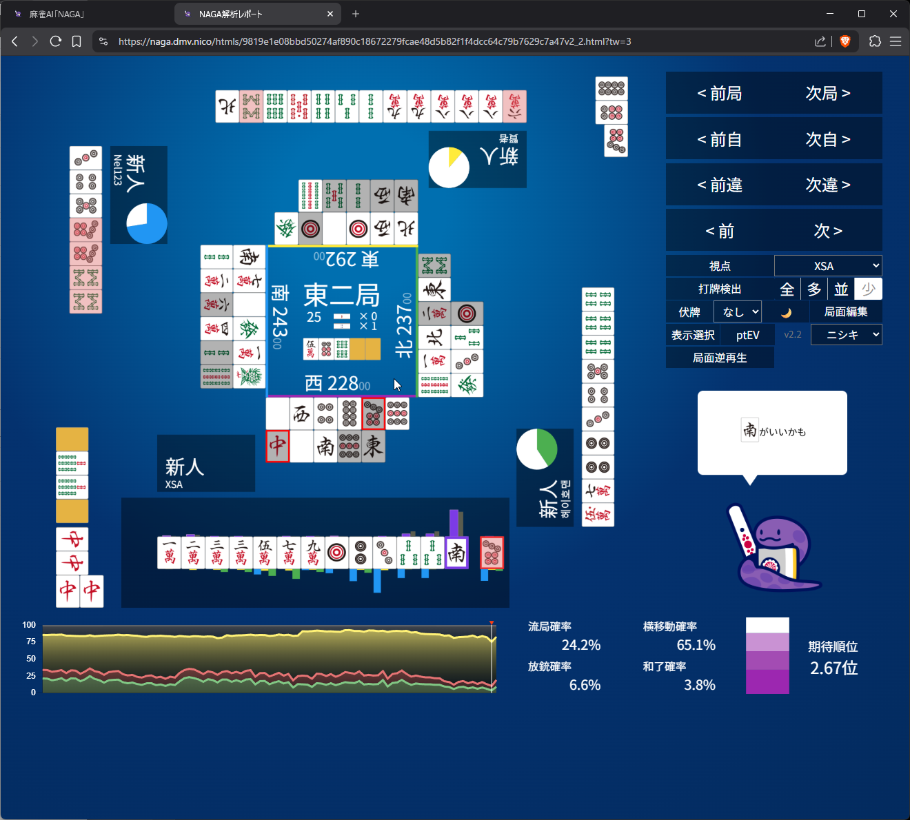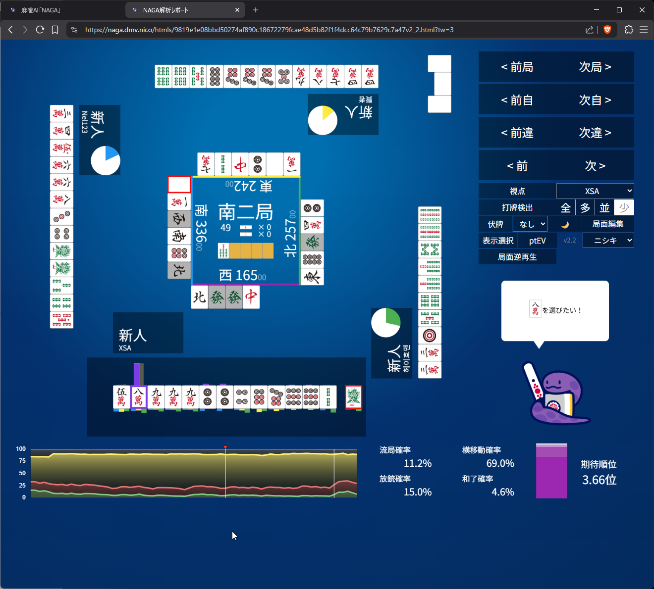 I don’t *need* more points but if I did this I wasn’t sure what ryanmen to cut so I passed. I guess it would be 34p and my sanshoku is dead anyway