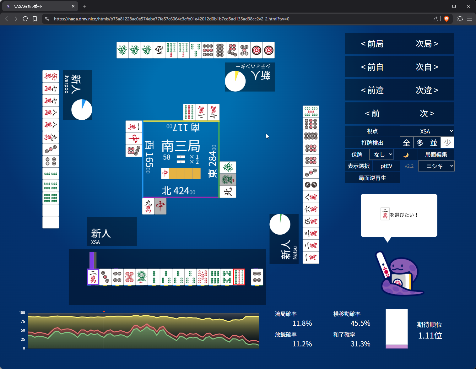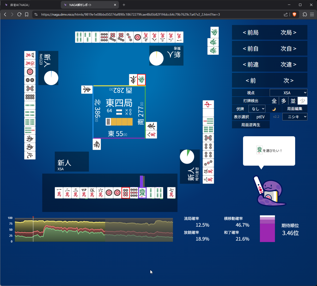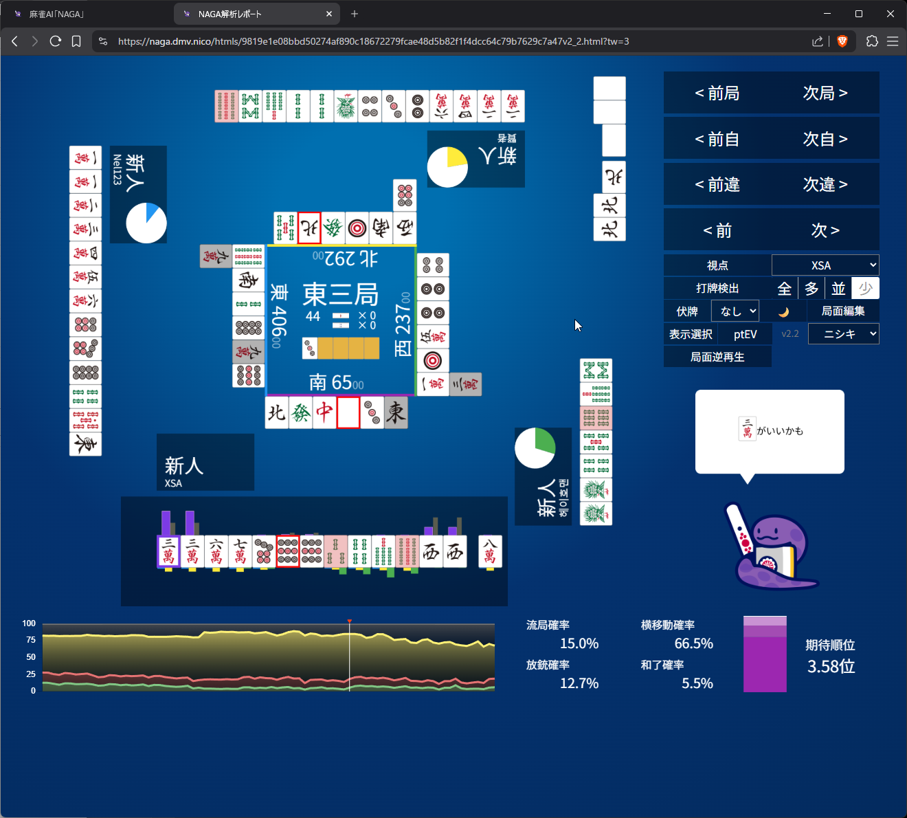 I don’t *need* more points but if I did this I wasn’t sure what ryanmen to cut so I passed. I guess it would be 34p and my sanshoku is dead anyway