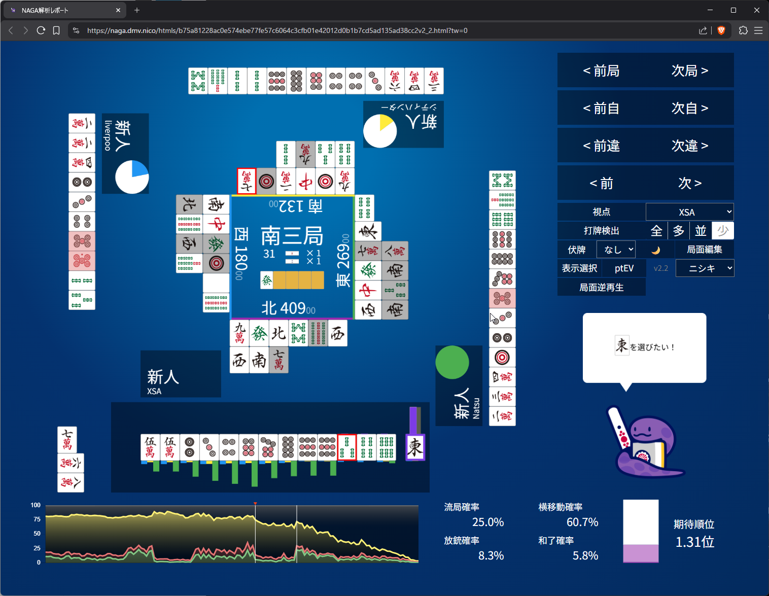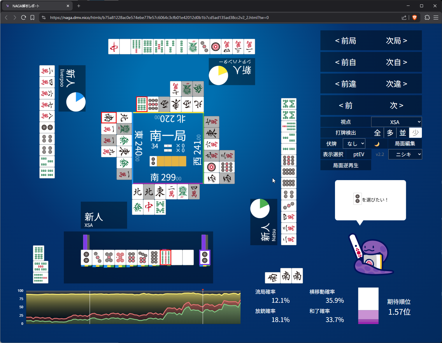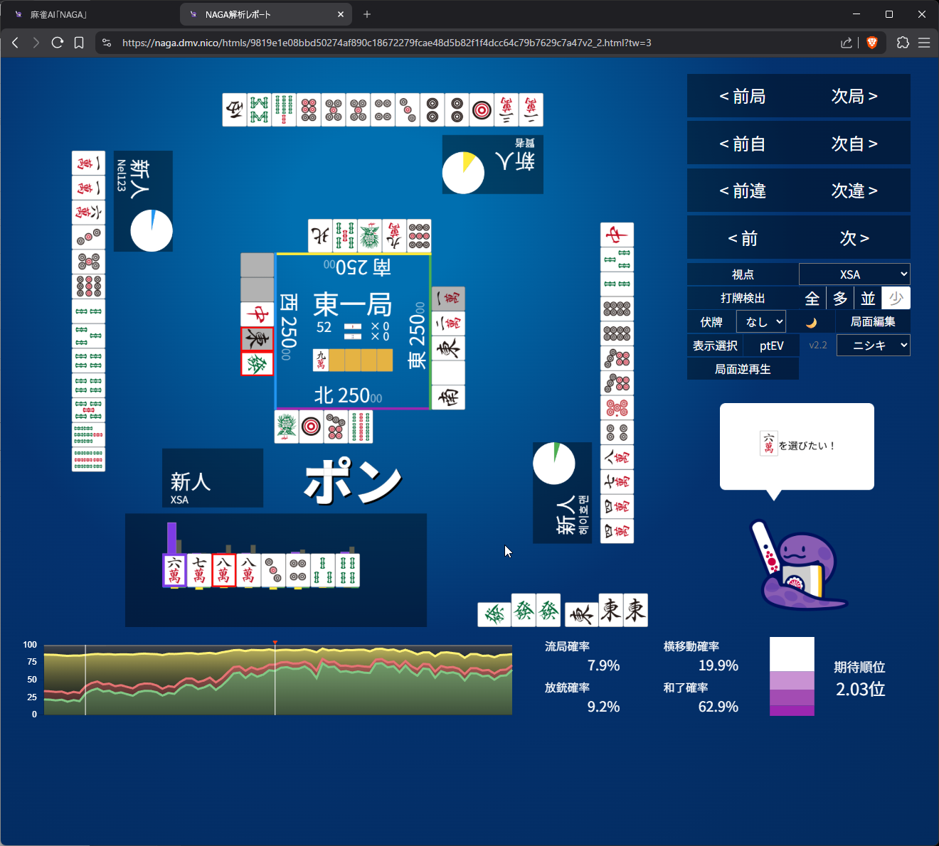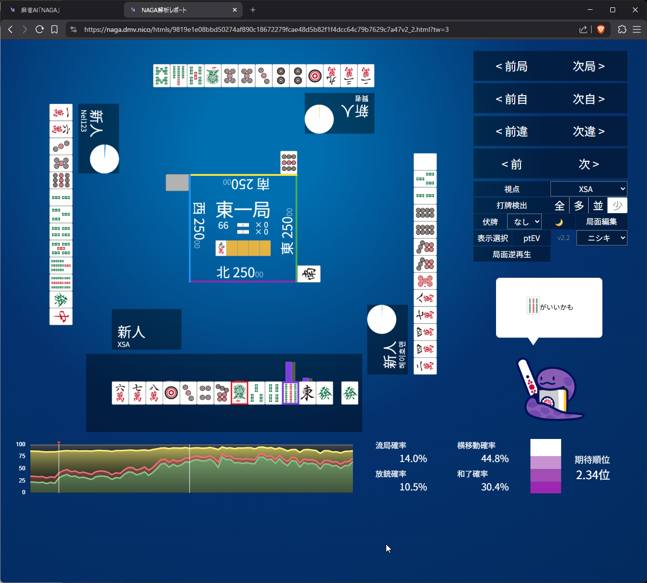 I don’t *need* more points but if I did this I wasn’t sure what ryanmen to cut so I passed. I guess it would be 34p and my sanshoku is dead anyway