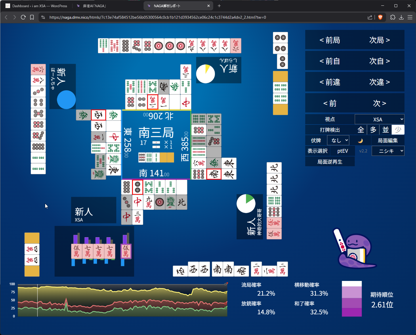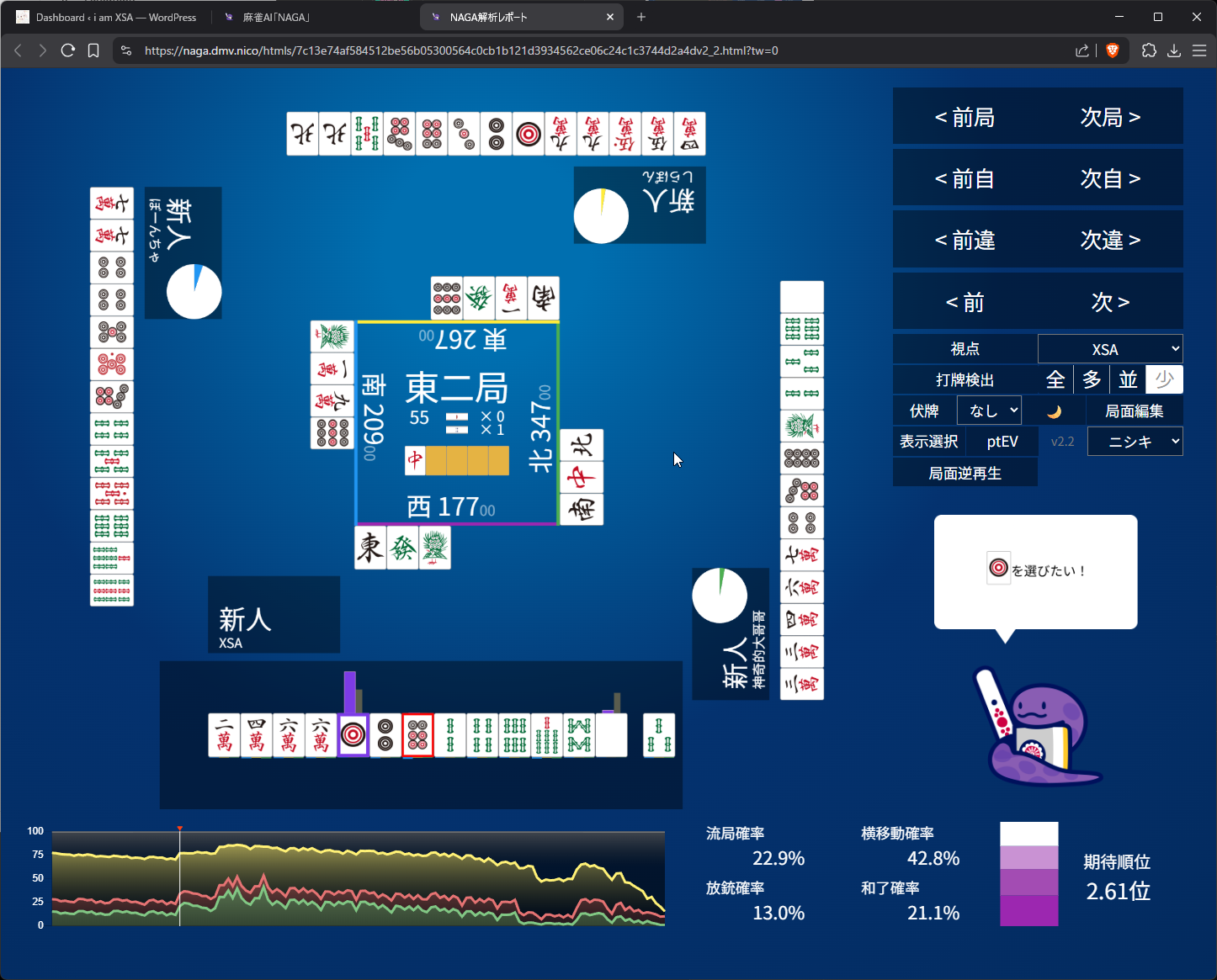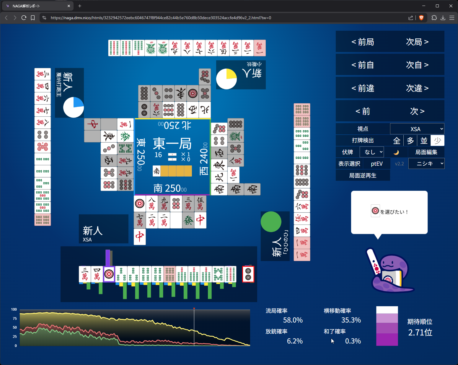Mahjong Soul Game Log: https://mahjongsoul.game.yo-star.com/?paipu=260422-35a946c9-4f44-4f89-8efd-f9542200a5f4_a925584019