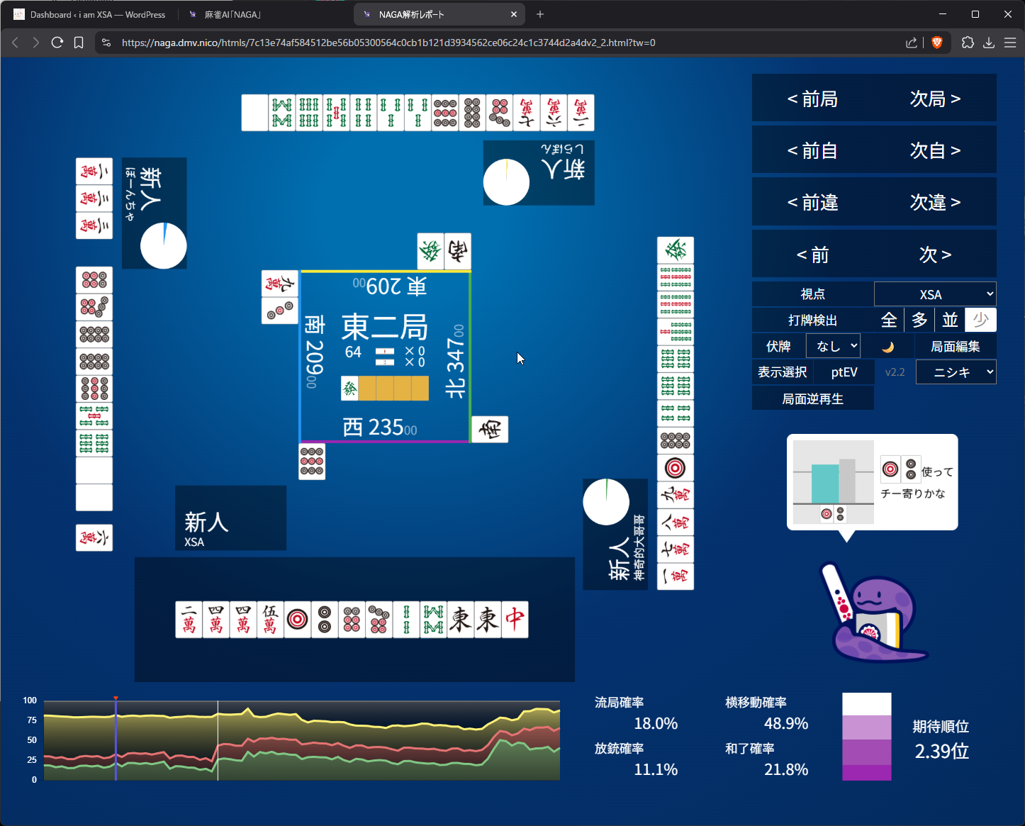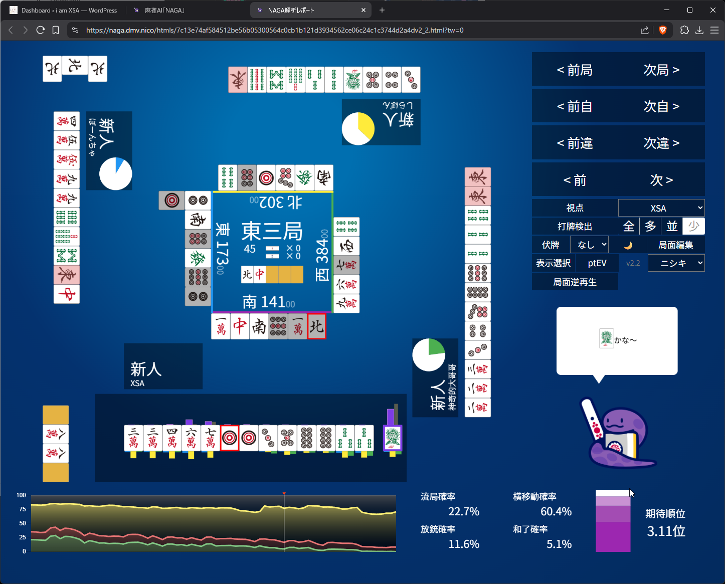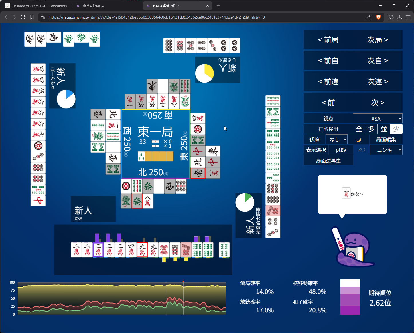 Mahjong Soul Game Log: https://mahjongsoul.game.yo-star.com/?paipu=260422-35a946c9-4f44-4f89-8efd-f9542200a5f4_a925584019