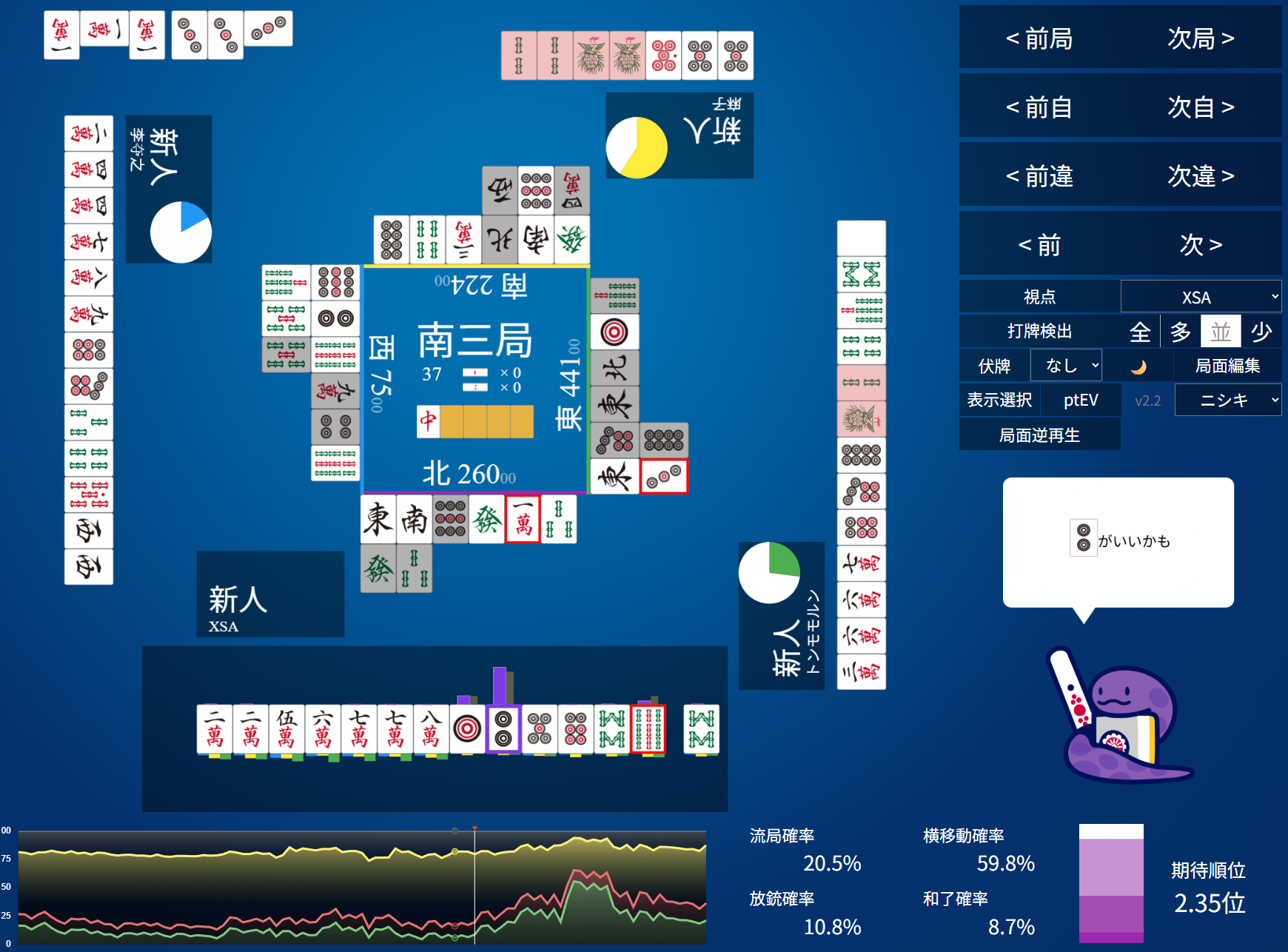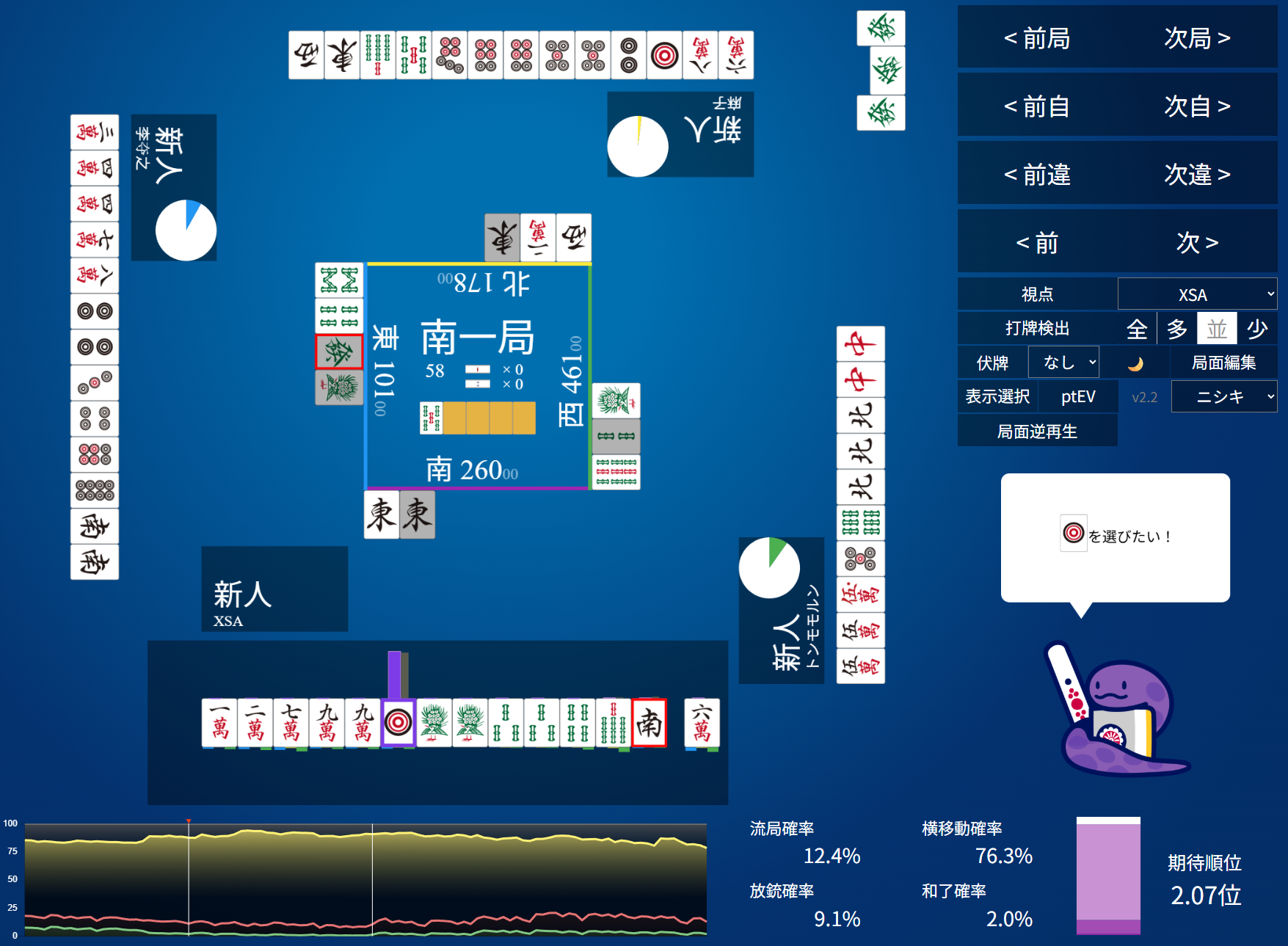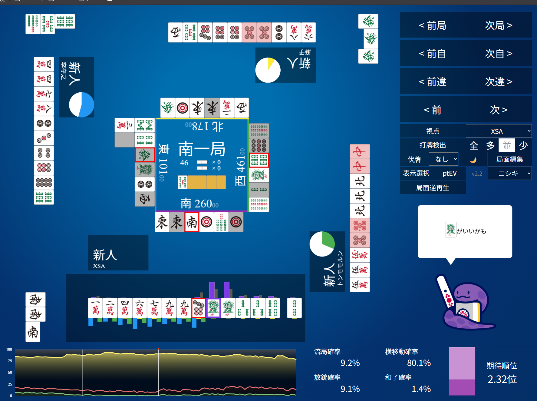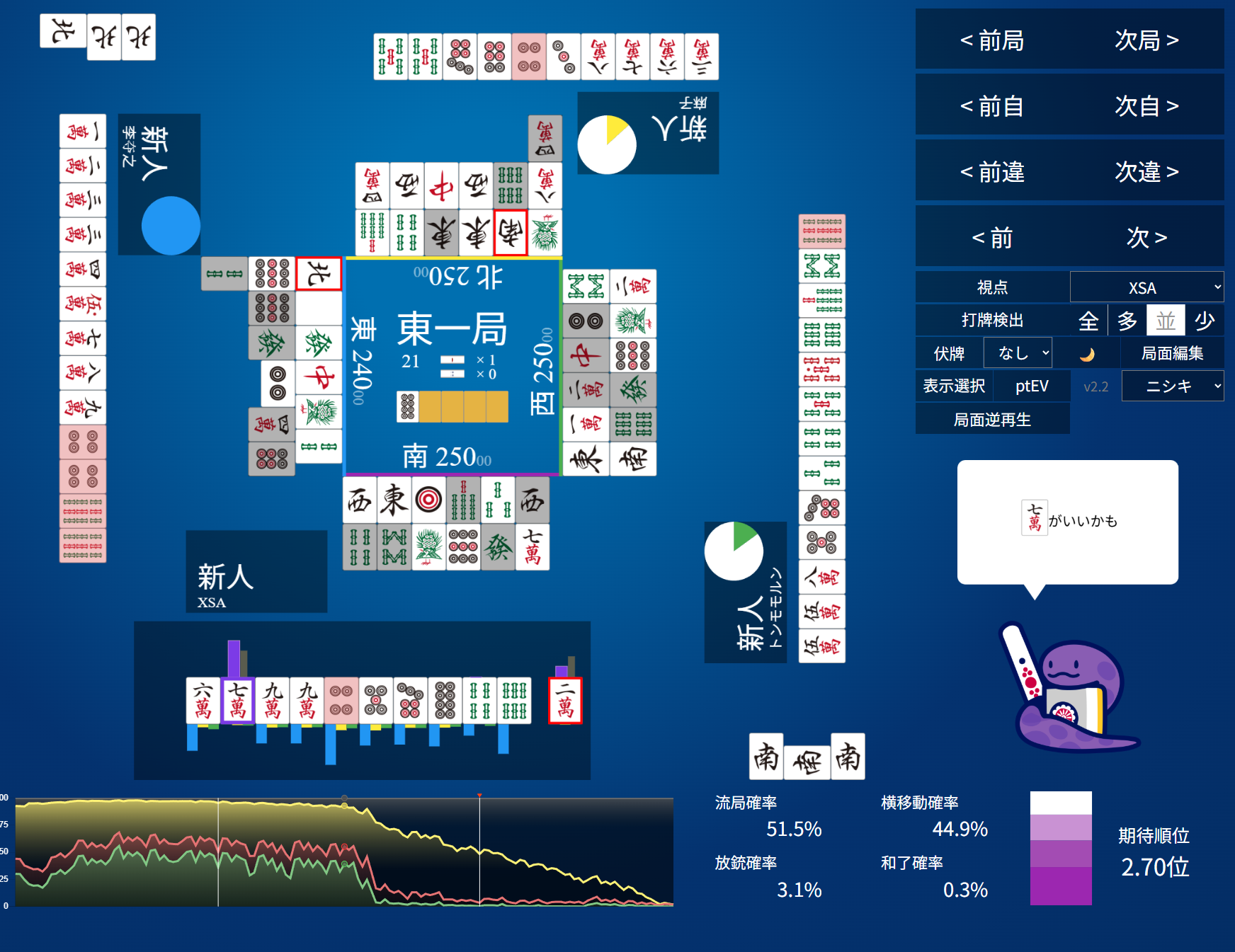 i guess 7p is bad? but i’d rather cut it now rather than later? i guess naga wants me to fold NOW but i dont feel that anyone is tenpai just yet