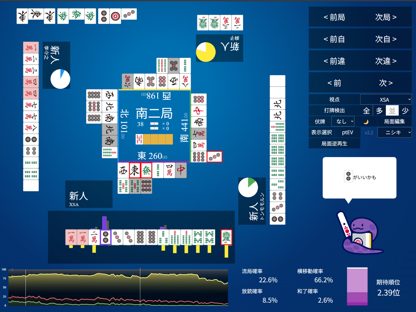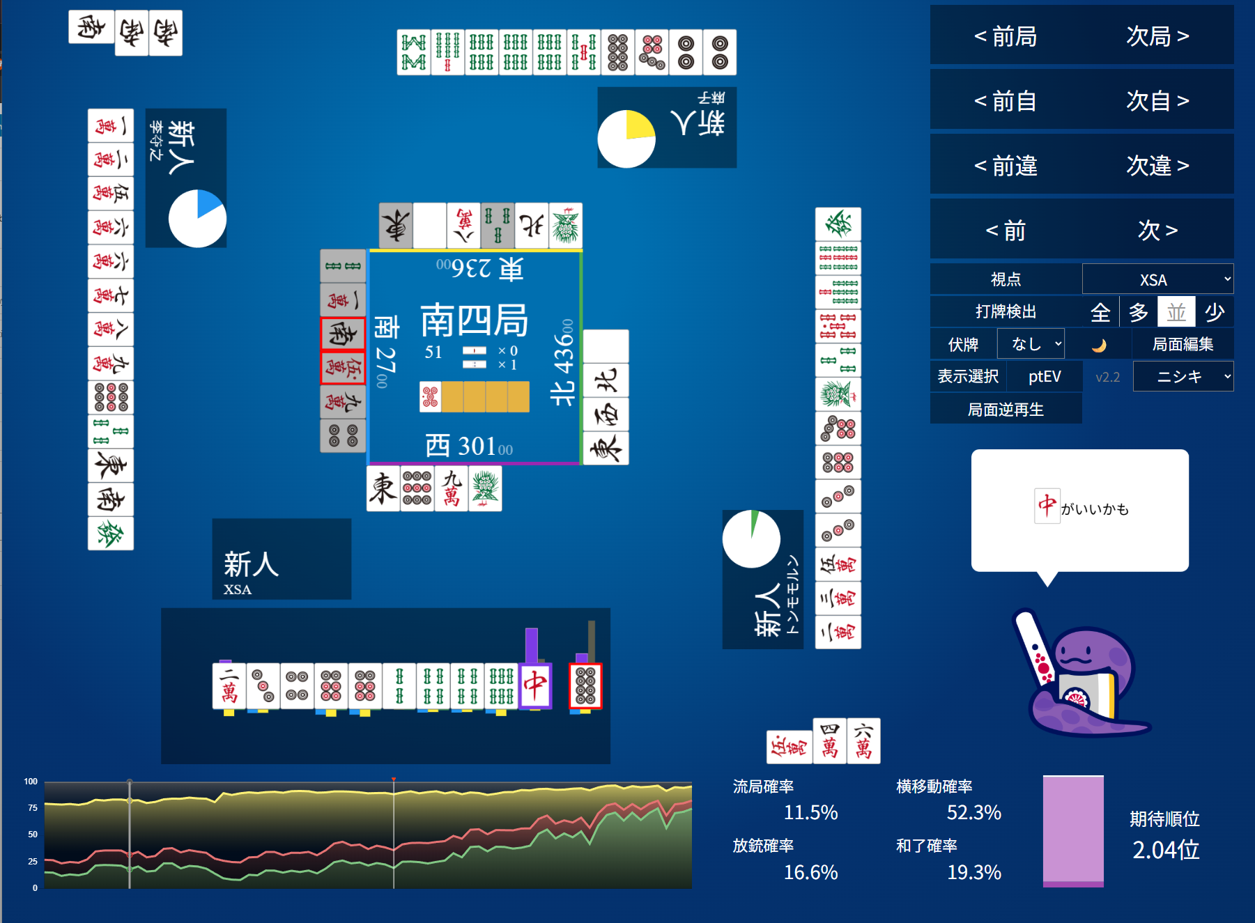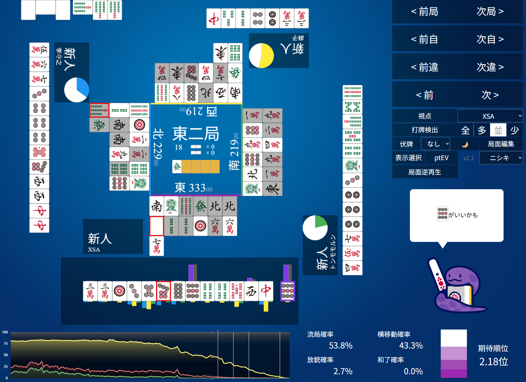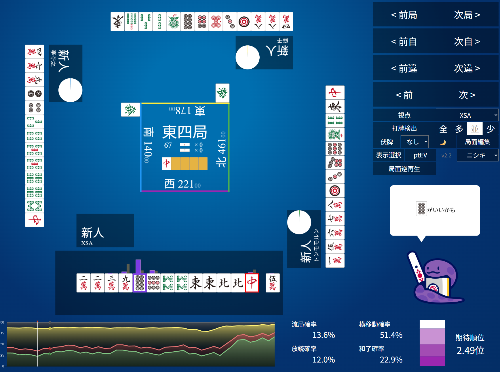 i guess 7p is bad? but i’d rather cut it now rather than later? i guess naga wants me to fold NOW but i dont feel that anyone is tenpai just yet